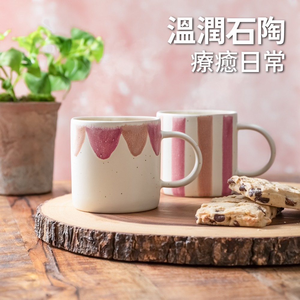 美國 Mikasa - 石陶馬克杯(胭色扇簷400ml) / 水杯 茶杯 咖啡杯 拿鐵杯 北歐風