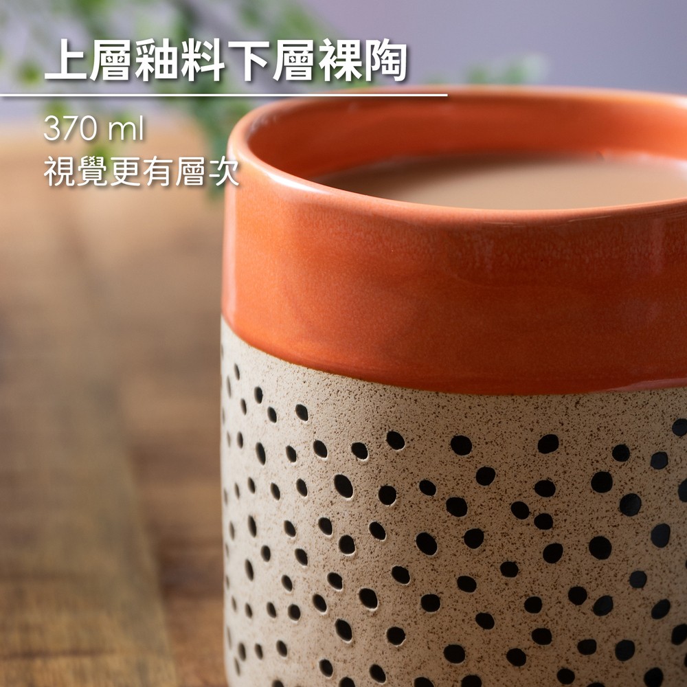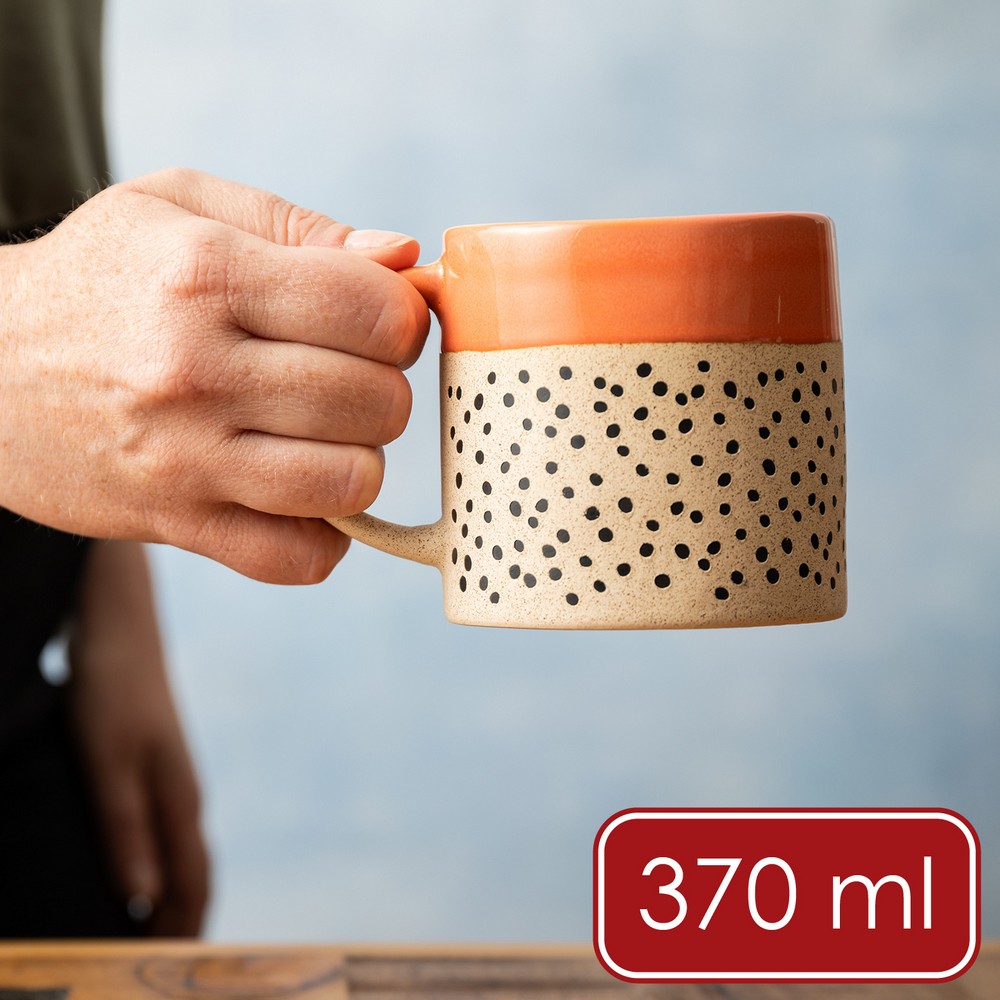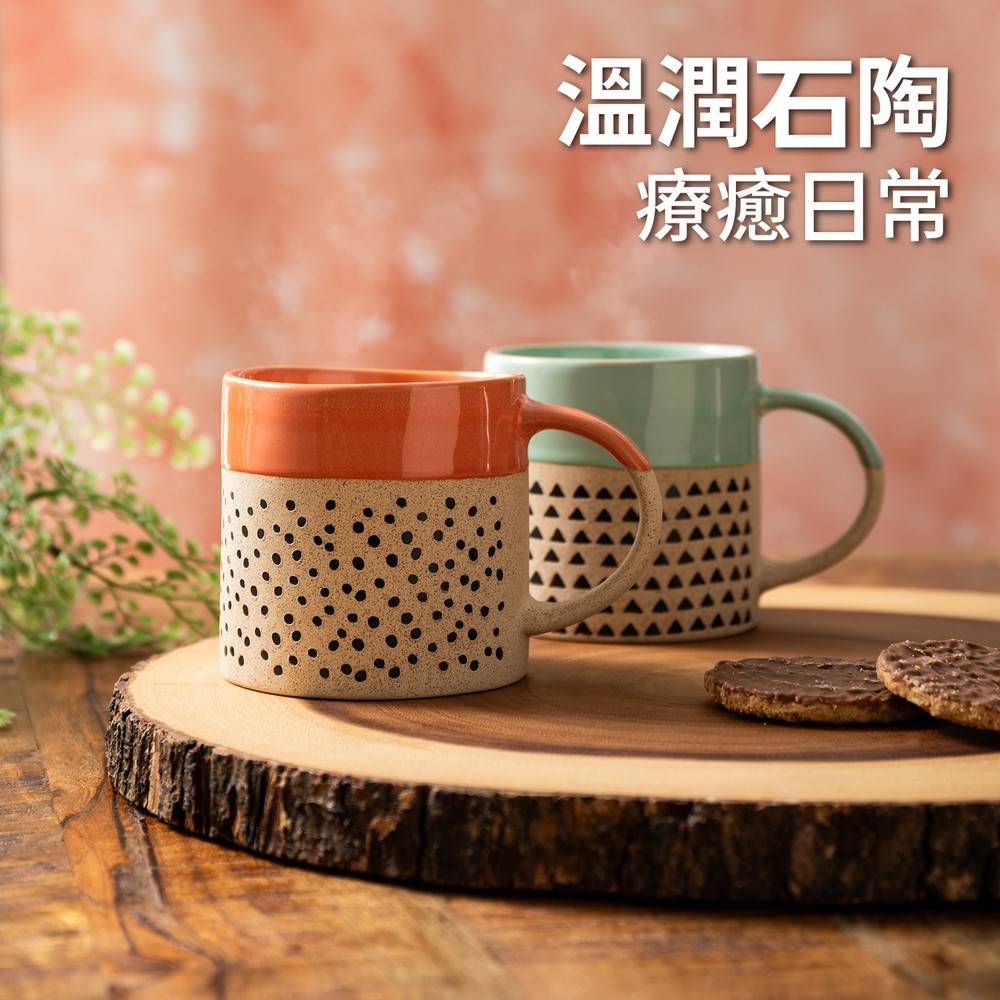 美國 Mikasa - 石陶馬克杯(珊瑚波點370ml) / 拿鐵杯 撞色幾何 北歐風 情侶對杯