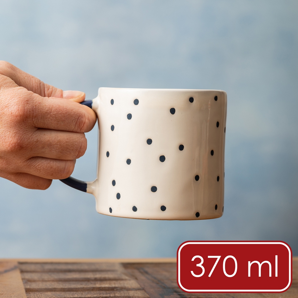 美國 Mikasa - 石陶馬克杯(湛藍俏皮波點370ml) / 拿鐵杯 北歐風 情侶對杯