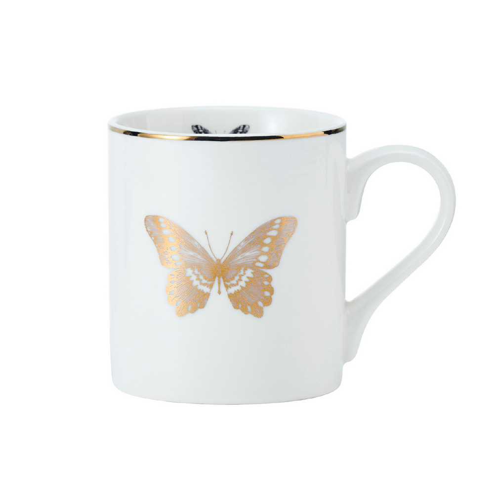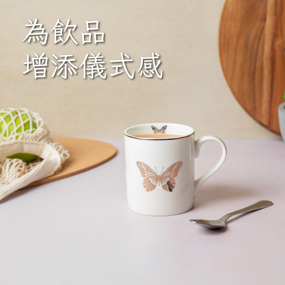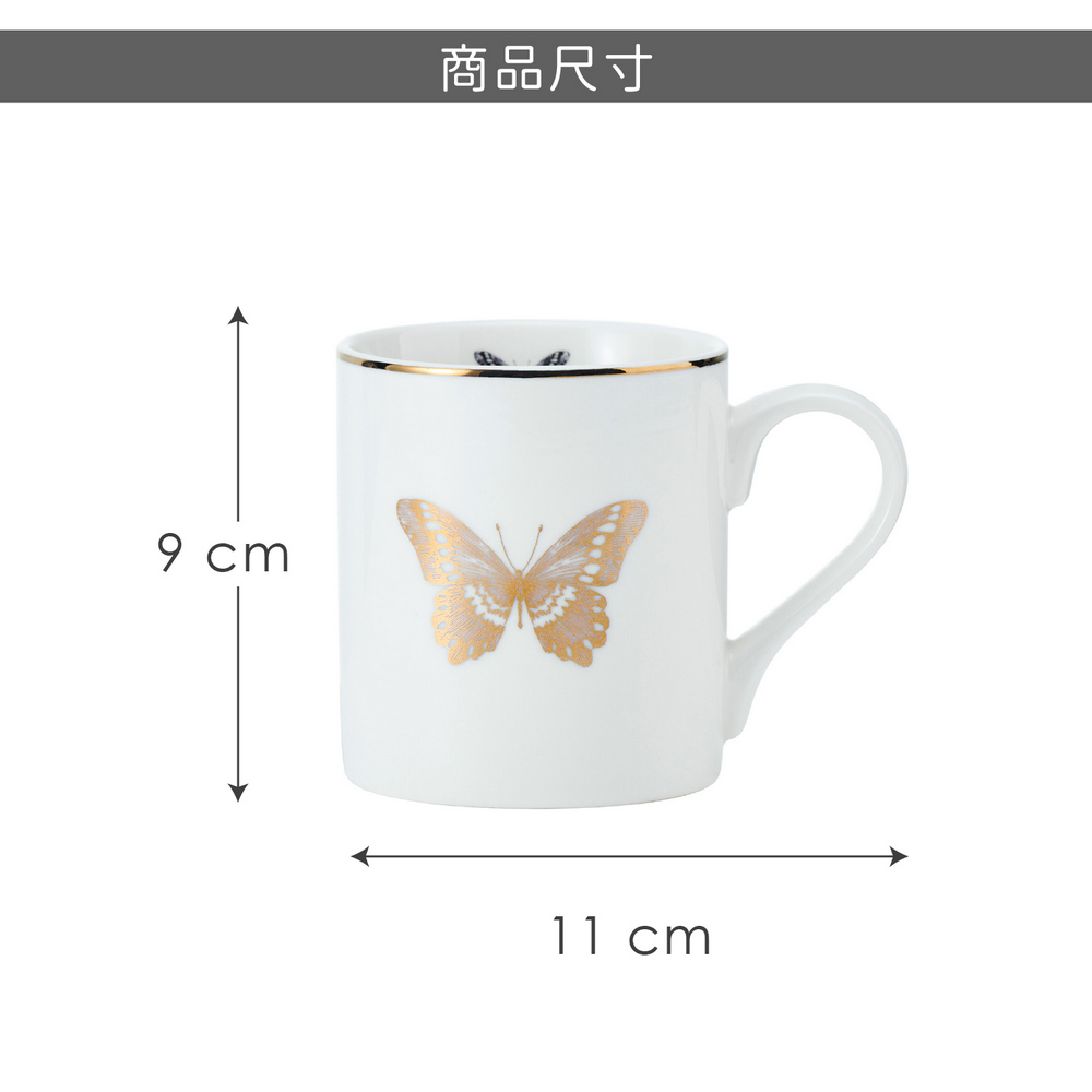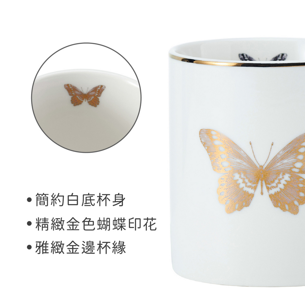 美國 Mikasa - 金邊瓷製馬克杯(翩翩蝶影280ml) / 水杯 茶杯 咖啡杯 陶瓷杯 蝴蝶印花