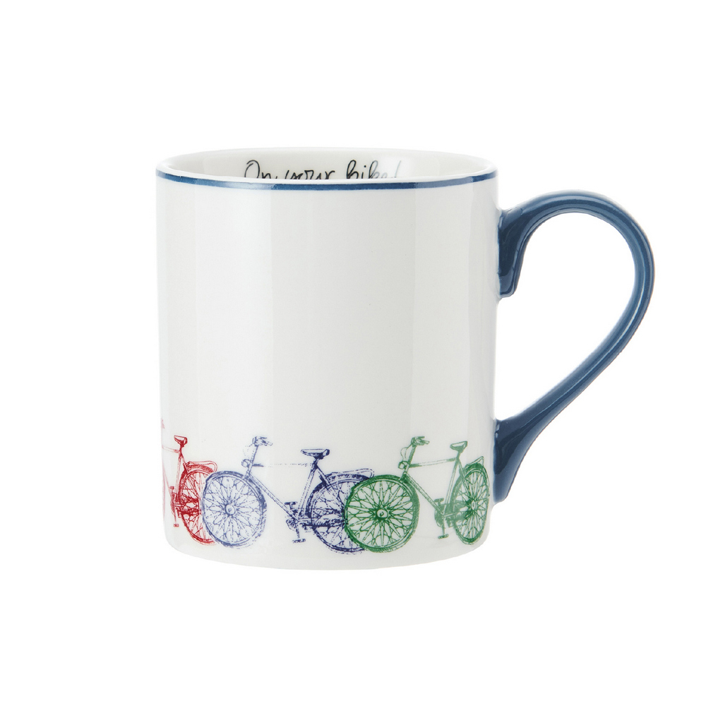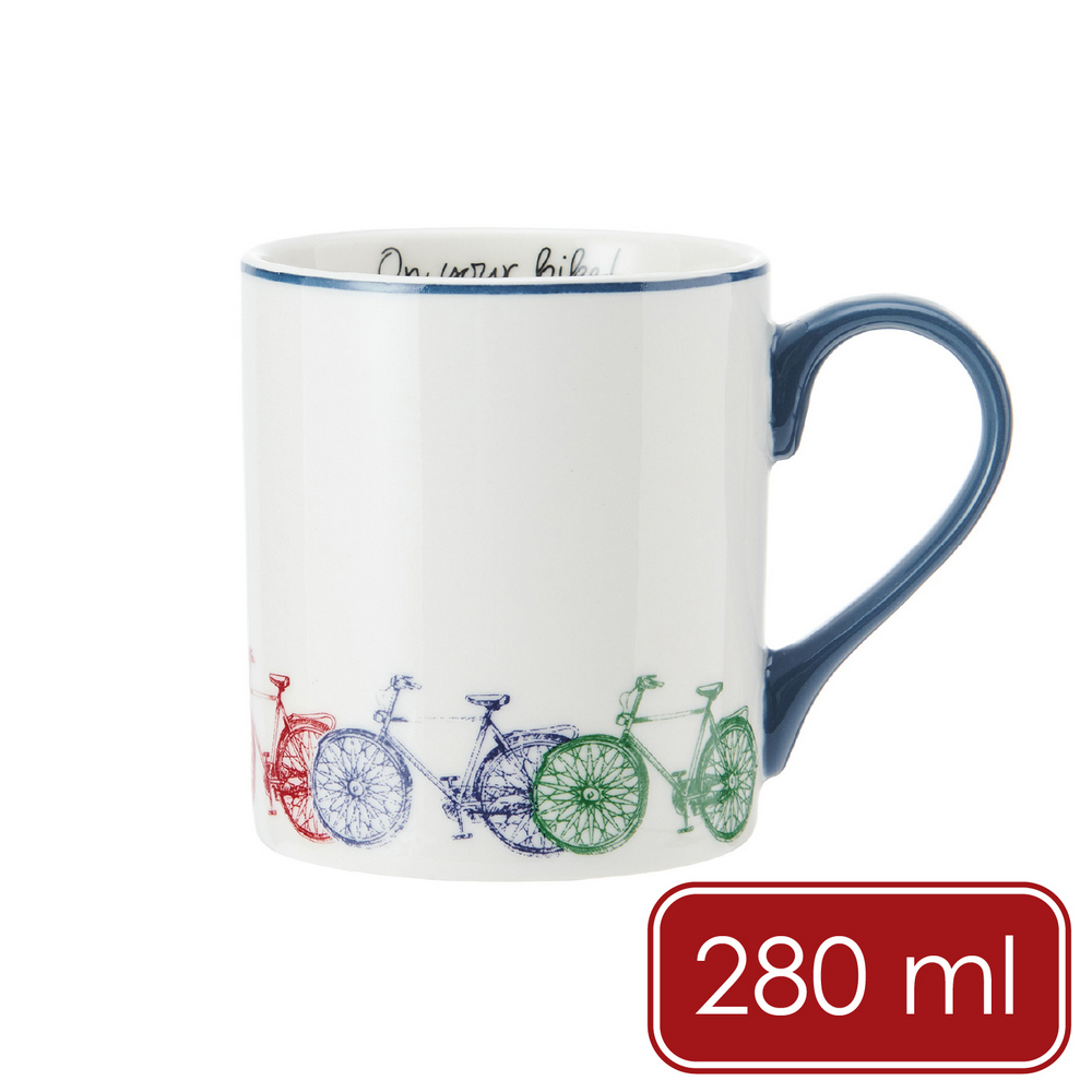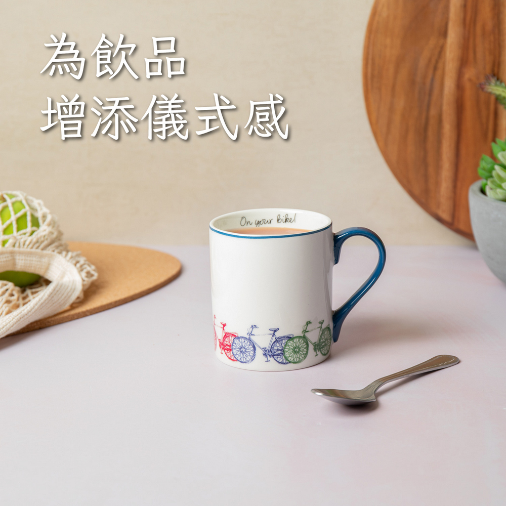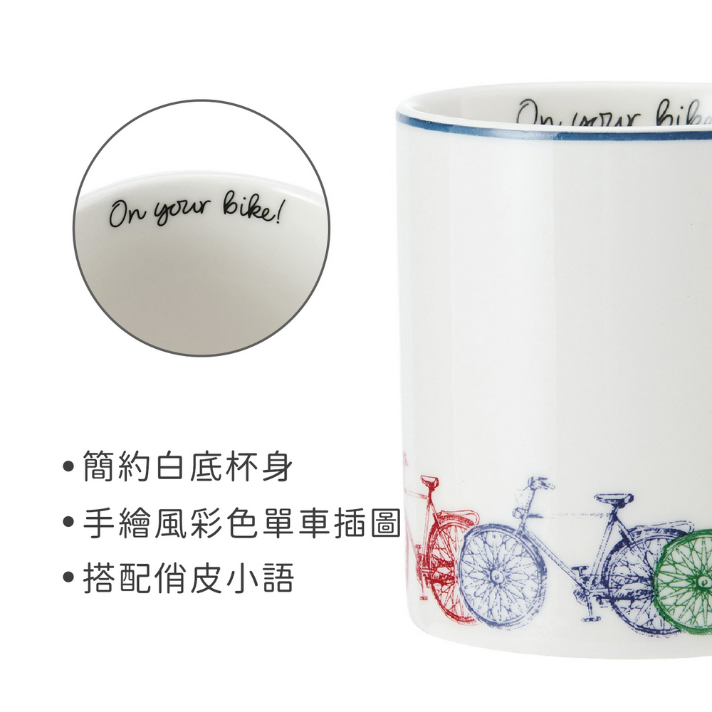 美國 Mikasa - 瓷製馬克杯(彩色單車280ml) / 茶杯 咖啡杯 陶瓷杯 自行車圖案 手繪風格