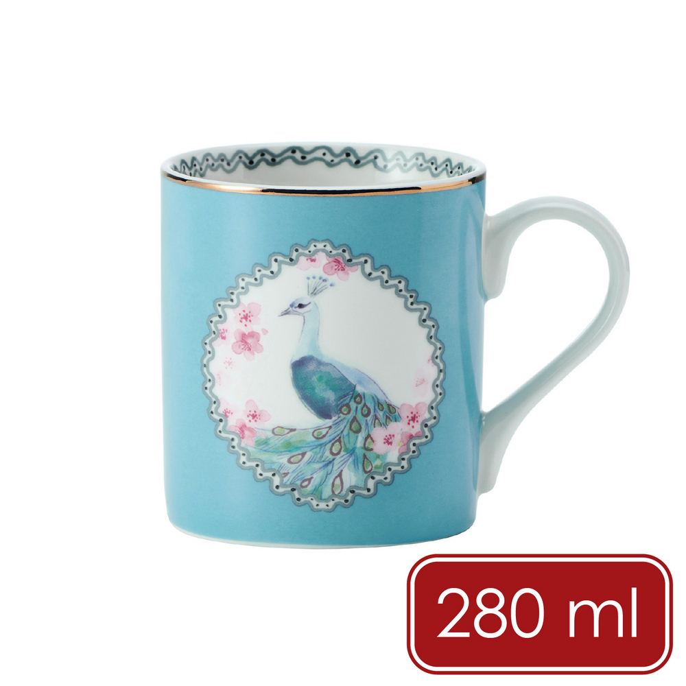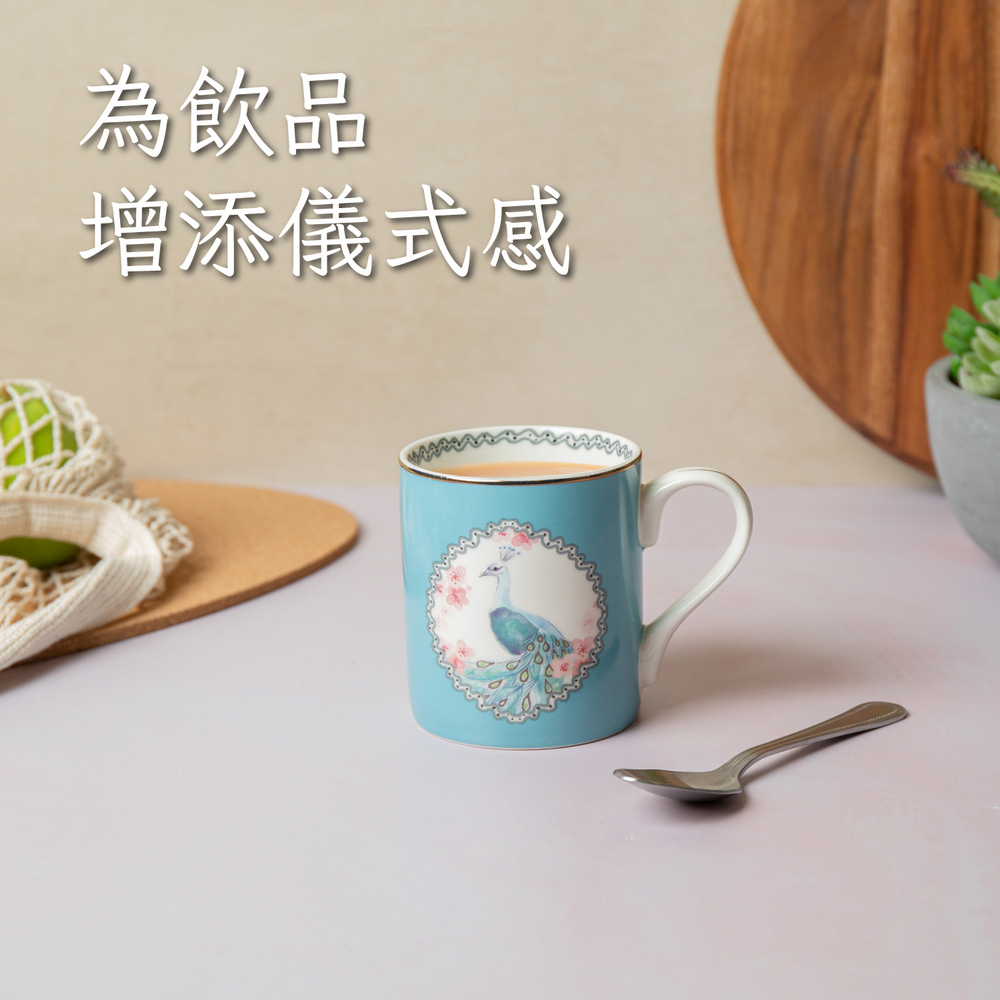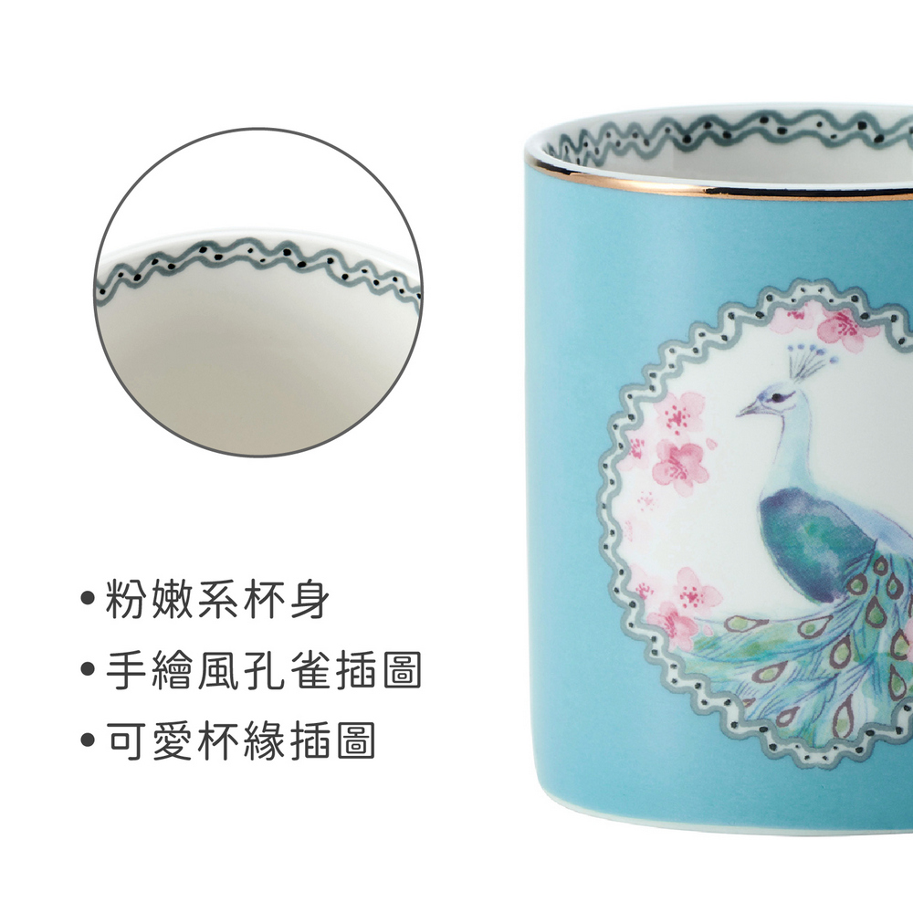 美國 Mikasa - 金邊瓷製馬克杯(花間孔雀280ml) / 水杯 茶杯 咖啡杯 動物圖案 手繪風