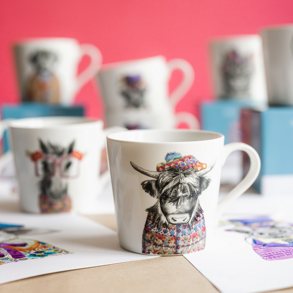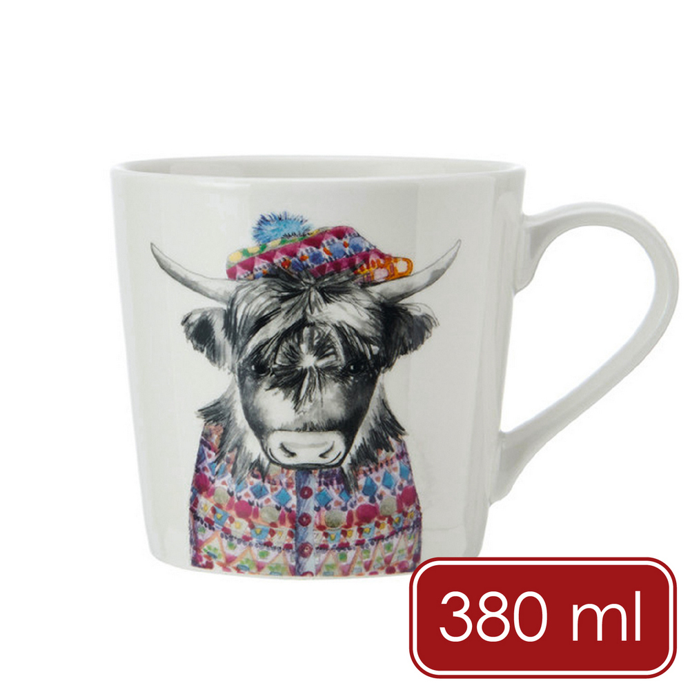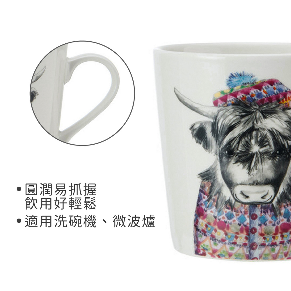 美國 Mikasa - Tipperleyhill瓷製馬克杯(冬裝犛牛380ml) / 水杯 茶杯 咖啡杯 動物圖案 手繪風格