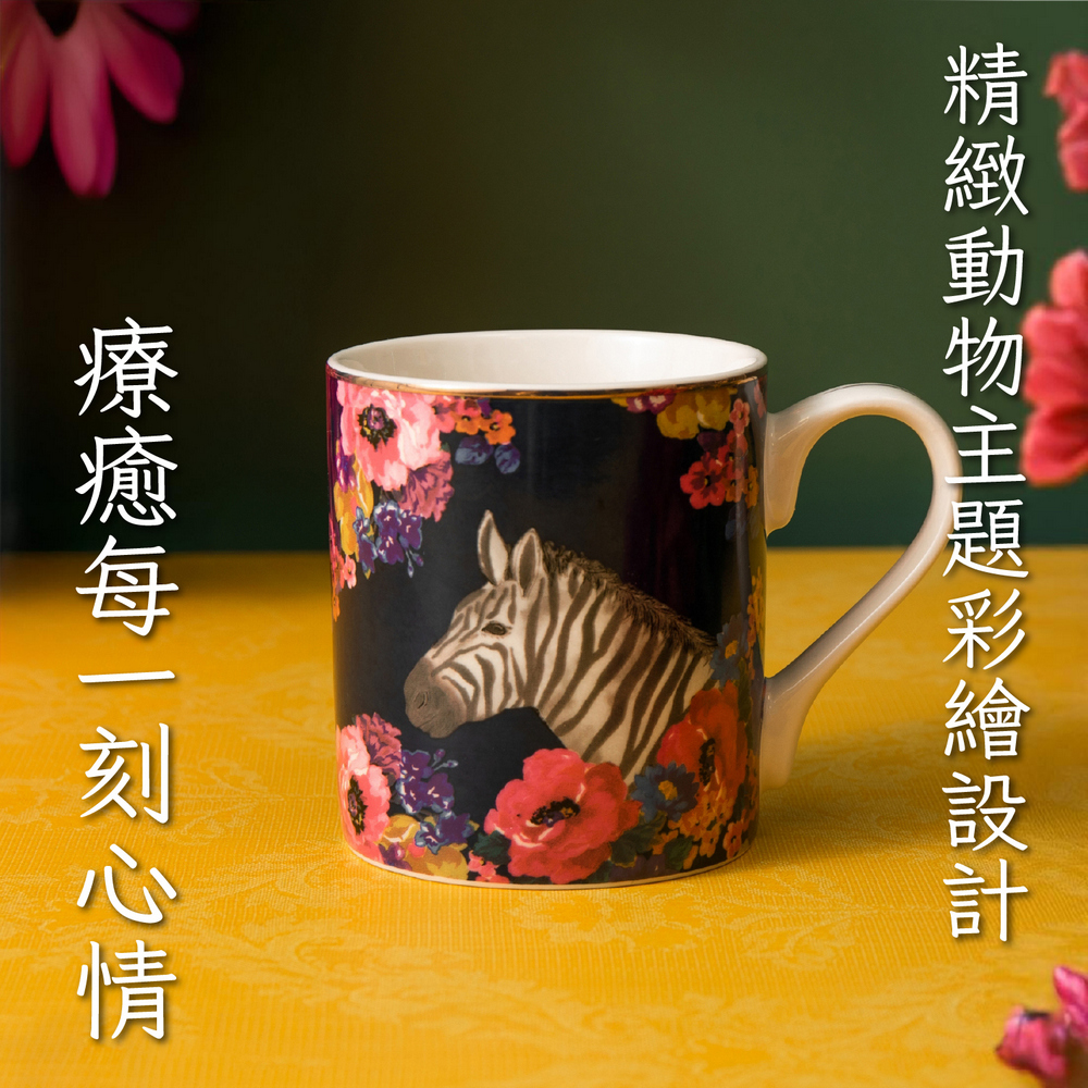 美國 Mikasa - 曠野之心瓷製馬克杯(斑馬280ml) / 水杯 午茶杯 咖啡杯 手繪風格
