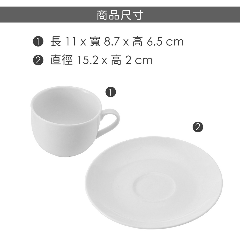 尺寸:杯單入含耳長 11 x 寬 8.7 x 高 6.5 cm;碟單入直徑 15.2 x 高 2 cm