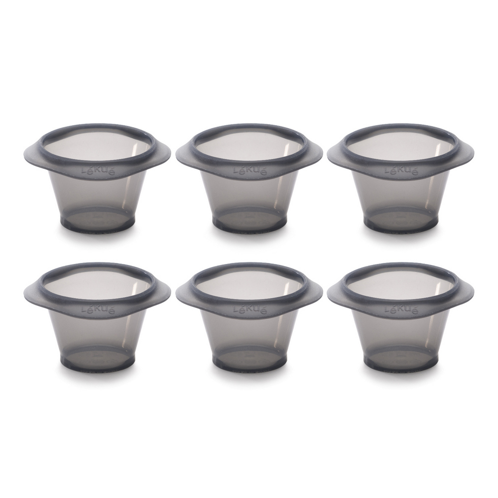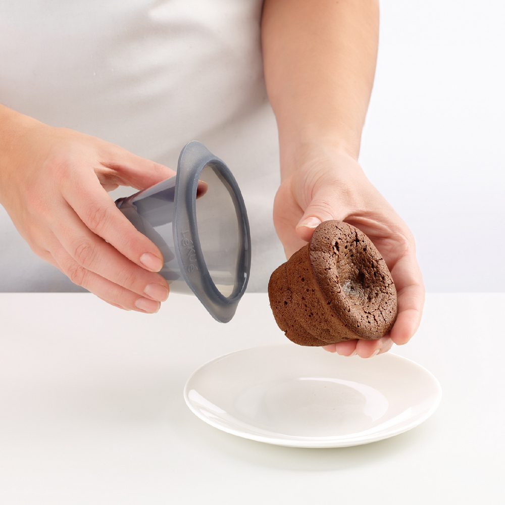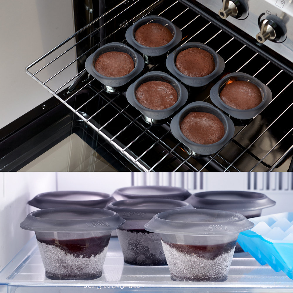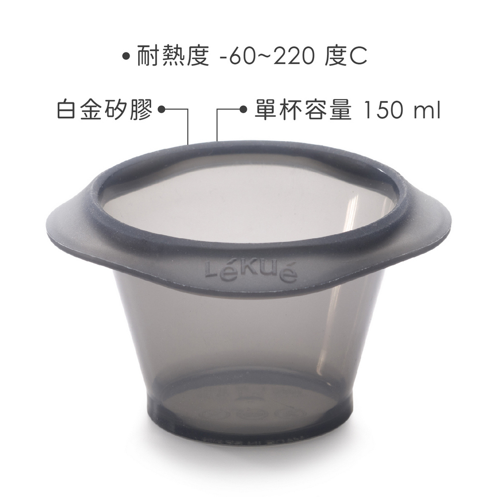 本商品一組 6 烤杯入、單杯容量 150ml;耐熱度 -60~220 度C (請遠離直接火源),適用微波爐、烤箱、氣炸鍋、冰箱、洗碗機。悠閒的下午就來做點心吧,看著熱騰騰的點心、蛋糕,巧克力等出爐,心情都好起來了。獨立蛋糕烤杯可一次烘培多個熔岩蛋糕或布丁果凍,再加入蘋果、藍莓、椰子等不同乾果,輕鬆享受美好的午茶時光。好脫模的矽膠材質,讓您烤後方便快速享用,絕不沾黏破壞形狀(幕斯類請成型後再脫模)。全系列由高密度且品質穩定的白金矽膠製成(BPA Free);請勿在白金矽膠上使用尖銳器具,如刀叉等。