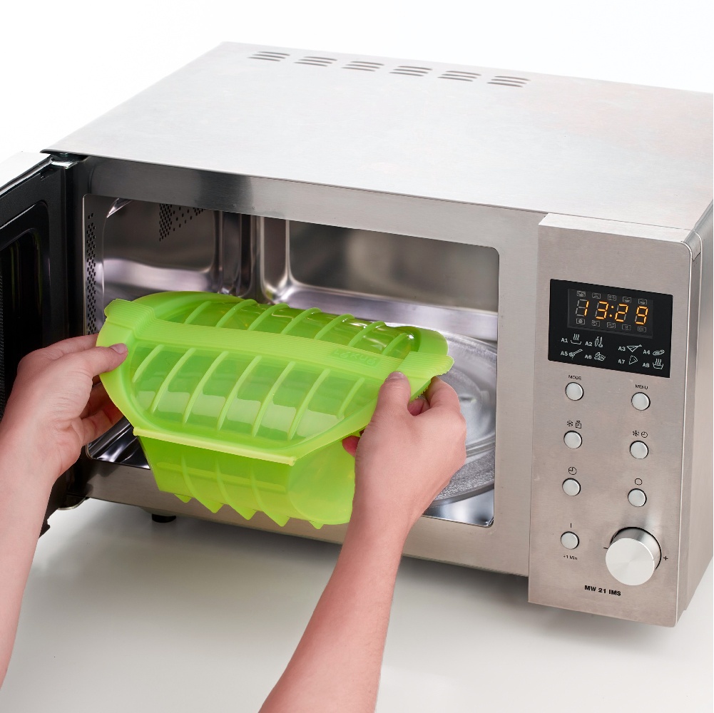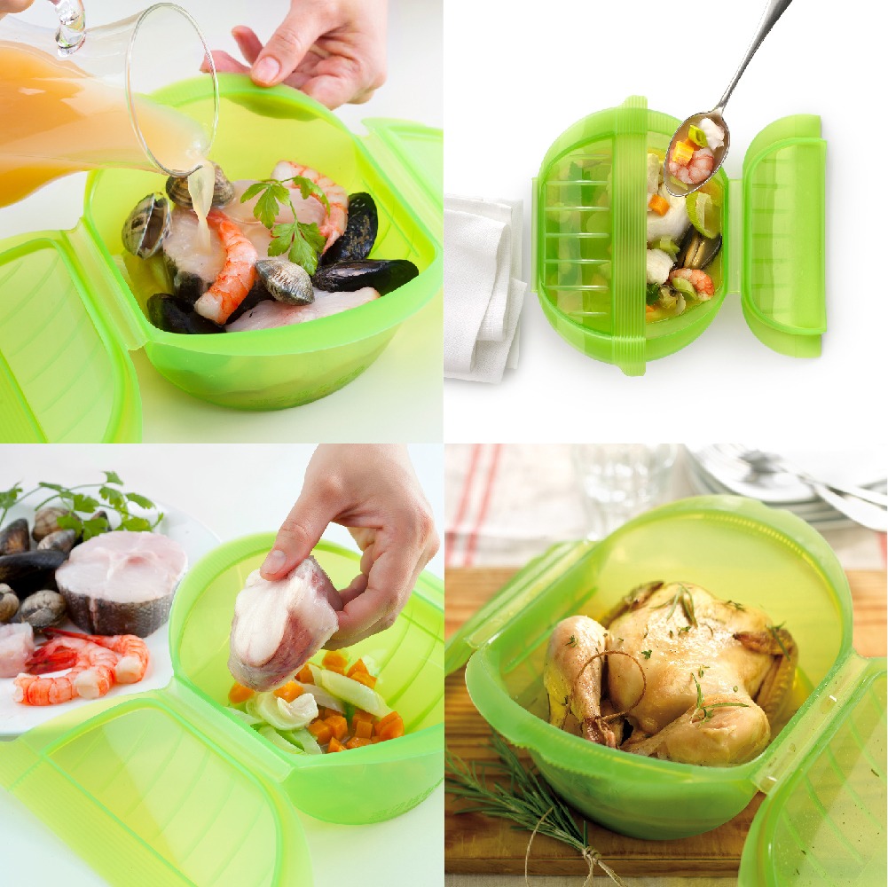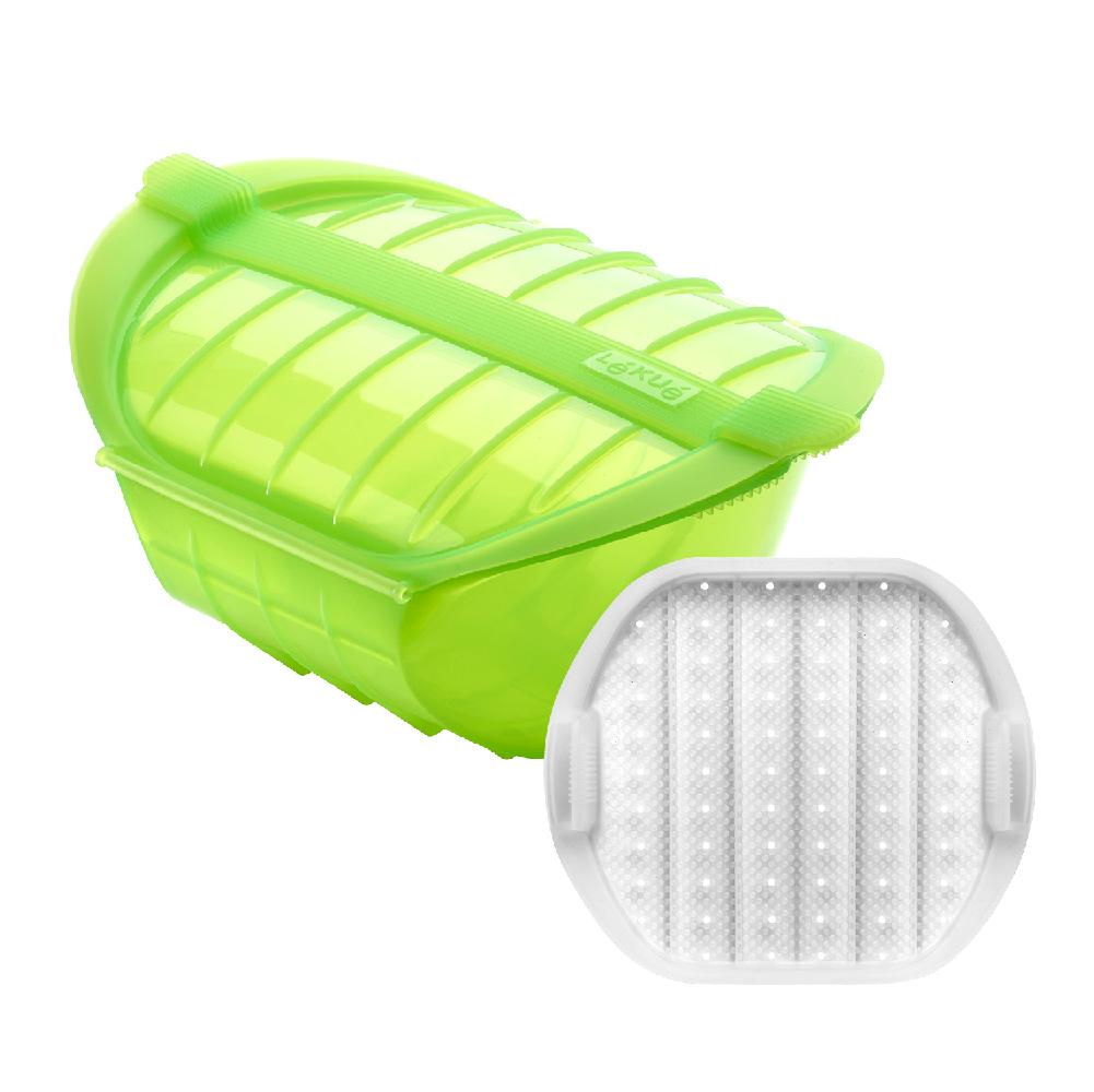 西班牙 LEKUE - 附濾盤微波蒸煮調理鍋(綠1L) / 白金矽膠 微波料理 懶人料理