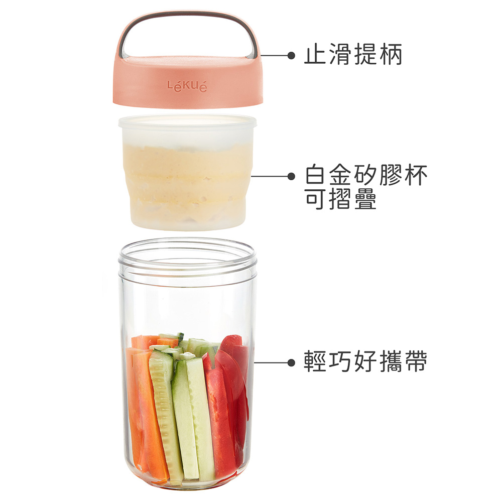 2. 容量約 600 ml (矽膠杯摺起時容量約 110 ml、展開時容量約 220 ml)。