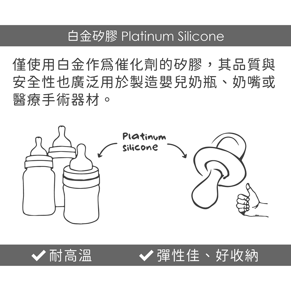材質:白金矽膠、PP 塑料、TPE 橡膠、TRITAN 塑料