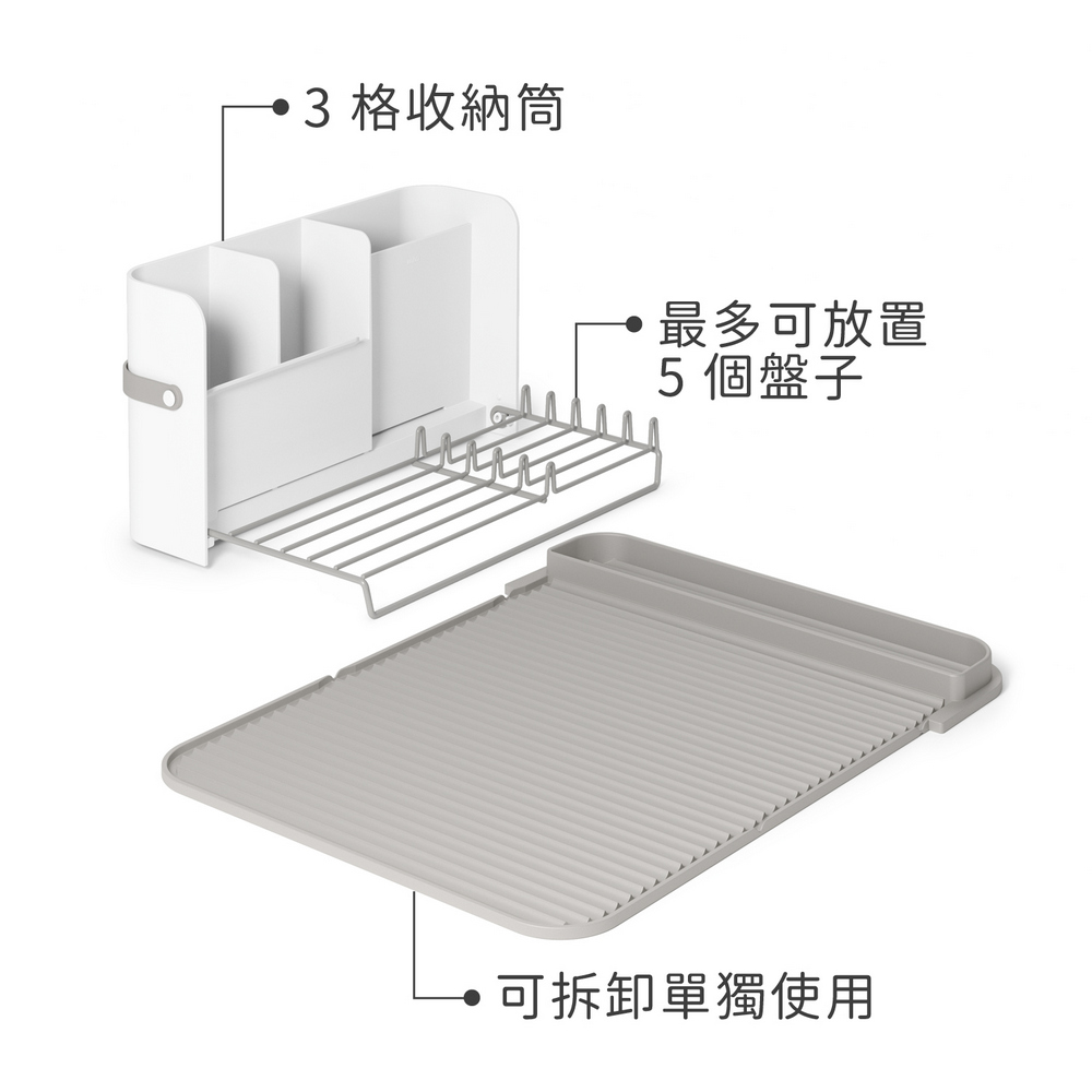 材質:回收 ABS 塑料、TPR 橡膠、鋼、矽膠