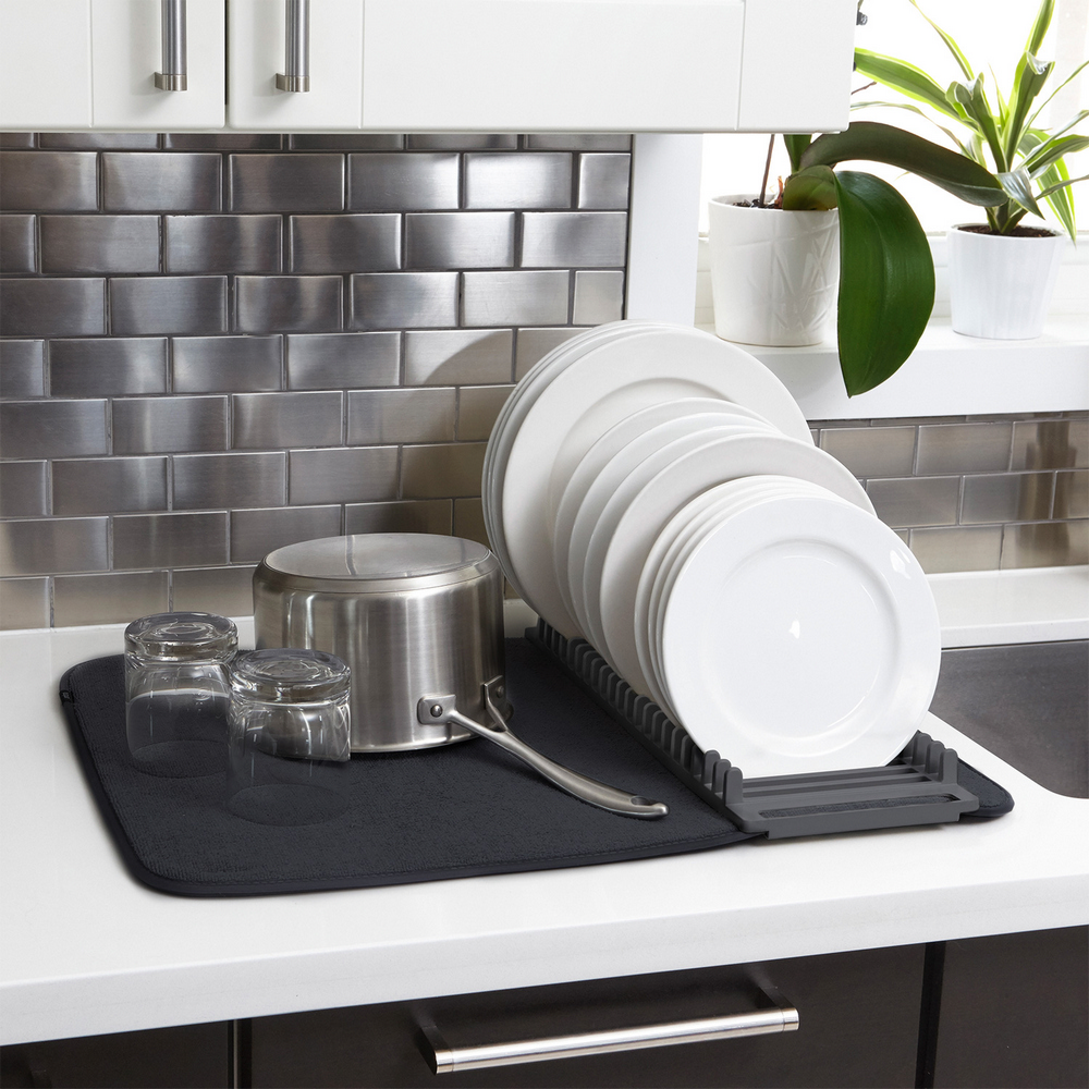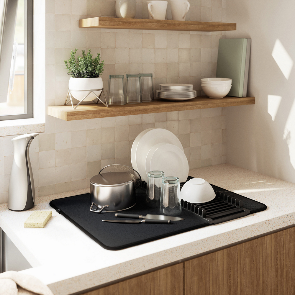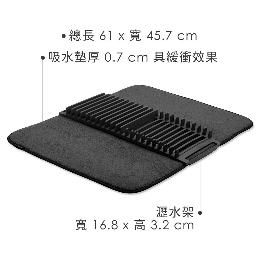 加拿大 Umbra - 吸水墊+碗盤瀝水架(墨黑) / 餐具 碗盤收納架 流理臺架