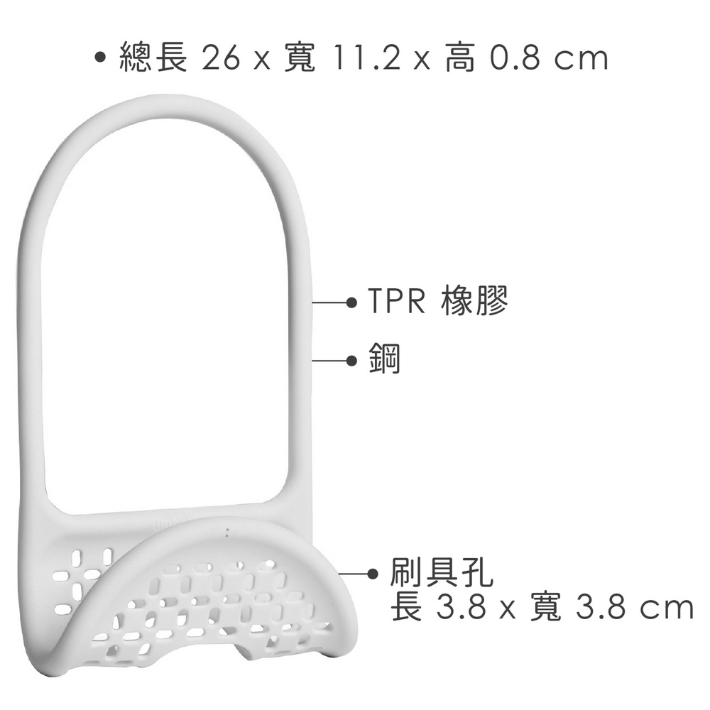 ※ 適合收納海綿、菜瓜布、刷具等;寬大的吊掛設計可套於水龍頭根部。
