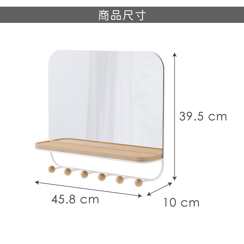 尺寸:長 45.8 x 寬 10 x 高 39.5;鏡面長 35.8 x 高 30.3 cm、置物台長 44.3 x 寬 7.5 cm