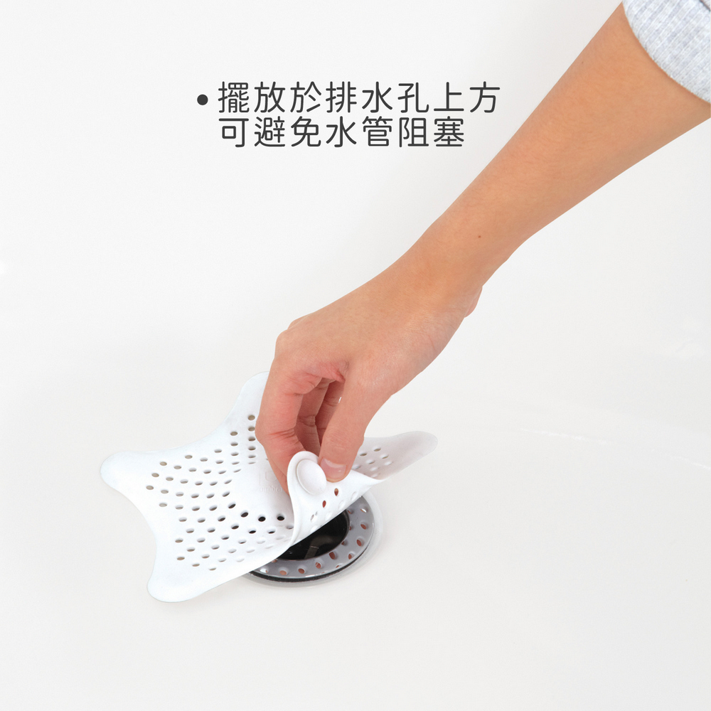 沐浴後總會擔心毛髮堵塞於排水管,推薦您此款水槽濾網。由軟橡膠製成,海星造型搭配底部吸盤設計,是日常中實用又可愛的必備推薦。