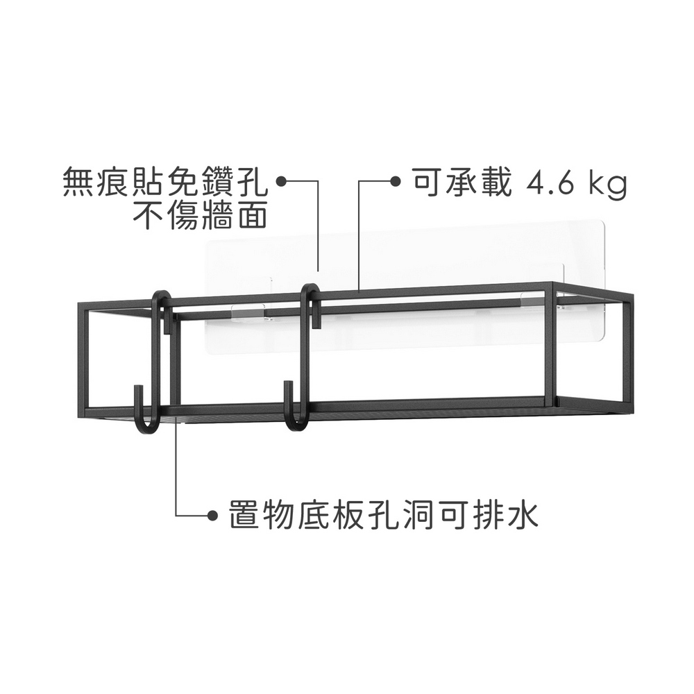 ※ 適用於浴室磁磚、玻璃牆面、鏡子、大理石、不鏽鋼等平滑表面;單個置物架最高可承載約 4.6 kg 重量。