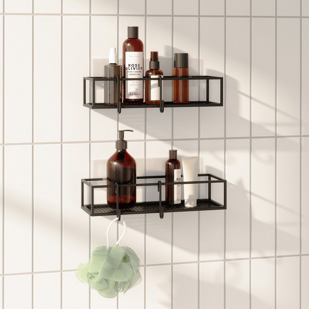 將盥洗用品穩妥擺放在牆面上的置物架,拿取便利又快速。推薦您此款浴室置物架,使用無痕貼免鑽孔不傷牆面,雙倍置物空間更實用,是浴室置物的必備推薦。