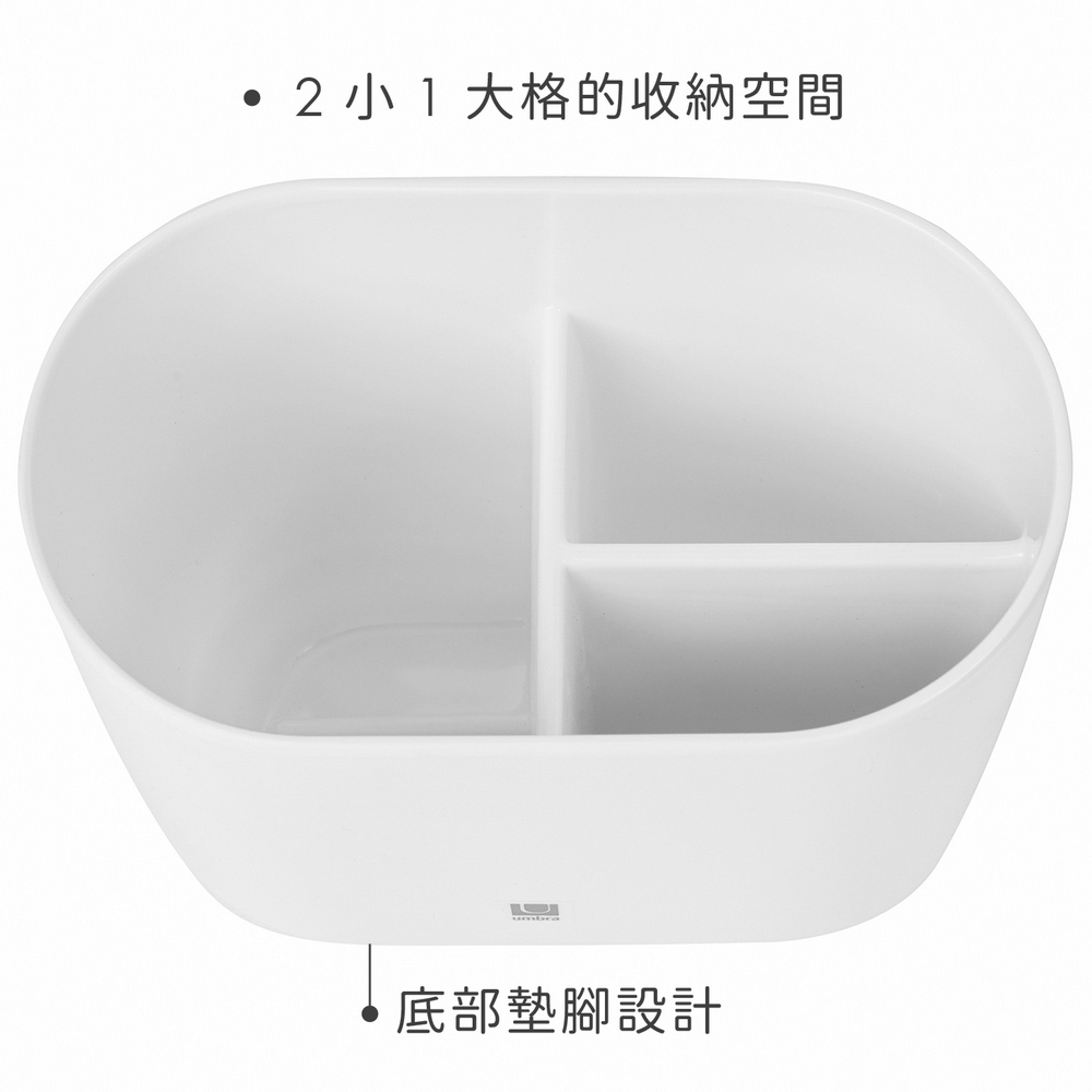 每天清潔牙齒的牙刷、牙膏,需要一個適當的空間放置。您可試試此款牙刷架,2 小 1 大的收納格設計,可分別放置家人、室友的牙刷,不易搞混拿錯;亦可放置於臥室,當筆筒、化妝刷具筒使用,是您衛浴盥洗、日常生活收納的推薦選擇。