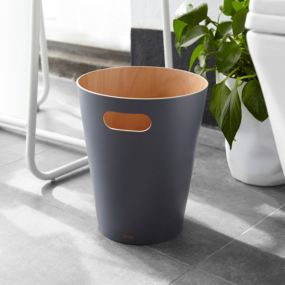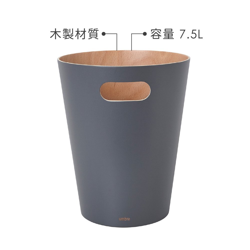 加拿大 Umbra - Woodrow木紋垃圾桶(岩灰7.5L) / 無蓋垃圾桶 質感垃圾桶