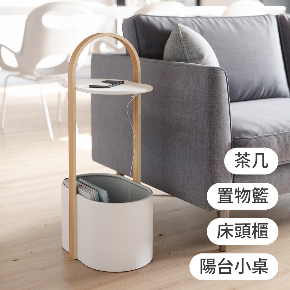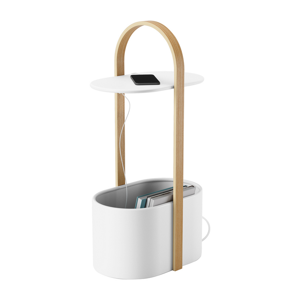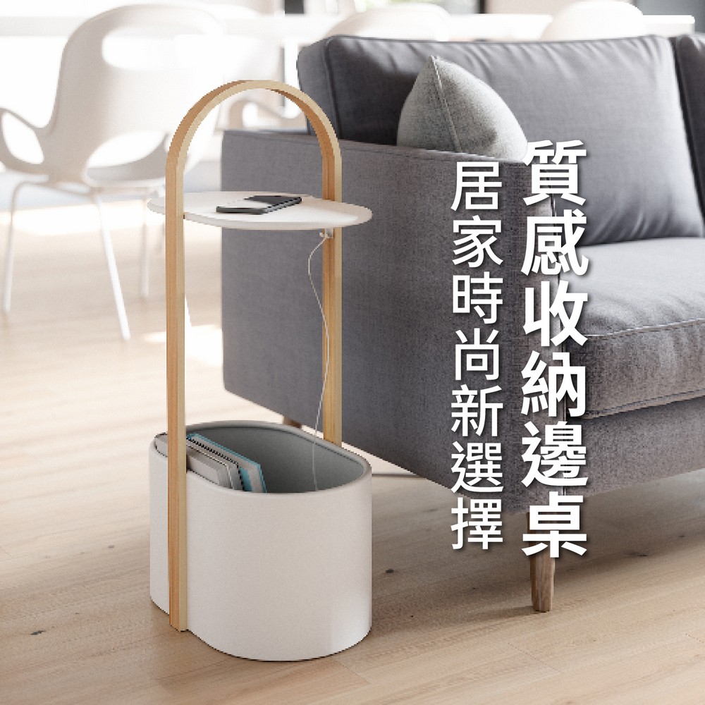 加拿大 Umbra - Bellwood木柄收納邊桌(原木白68cm) / 儲物邊桌 沙發邊桌