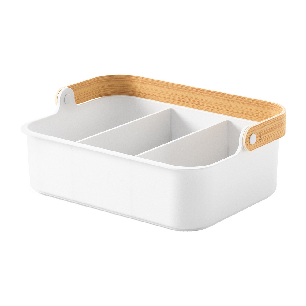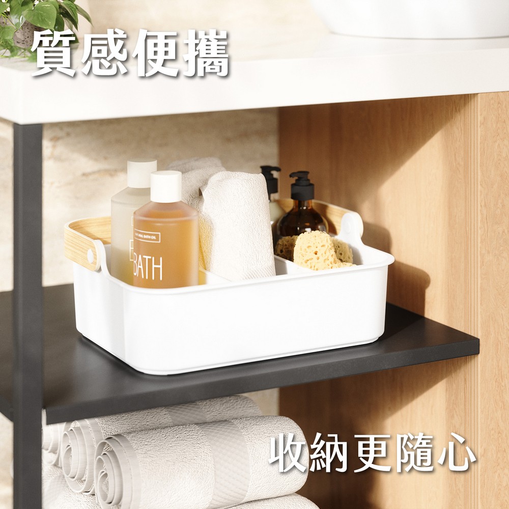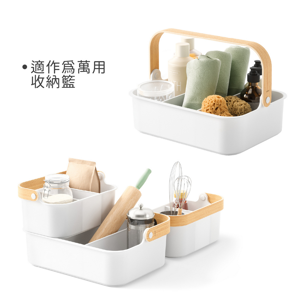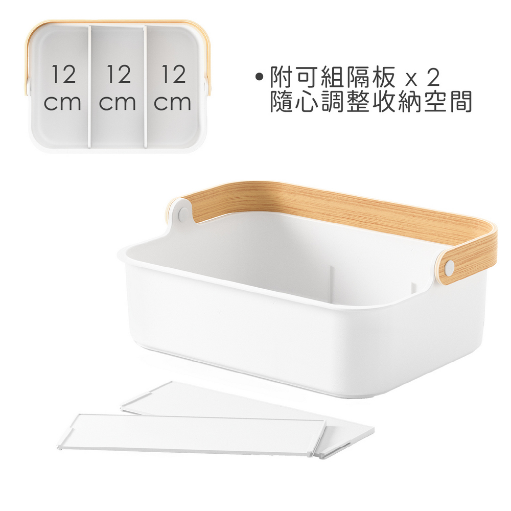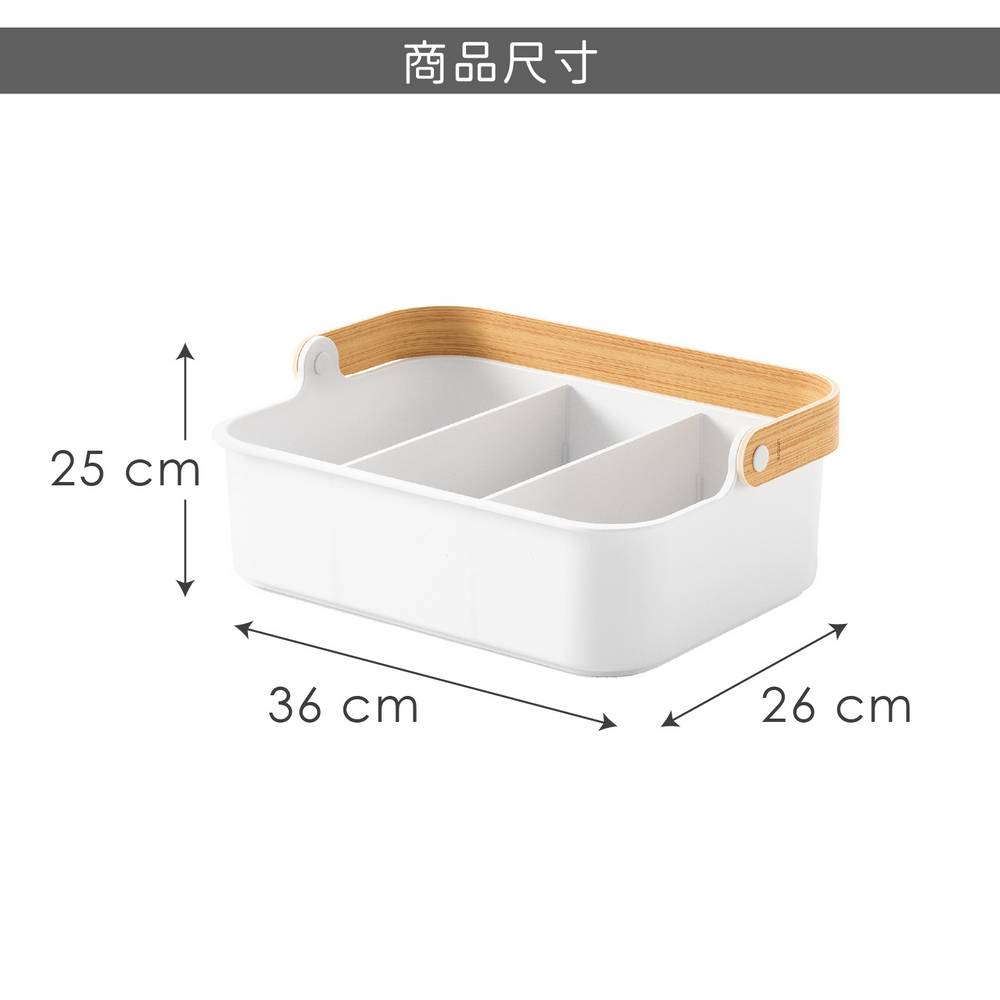 尺寸:含提把長 36 x 寬 26 x 高 25 cm;隔板長 23.5 x 寬 0.5 x 高 8.5 cm