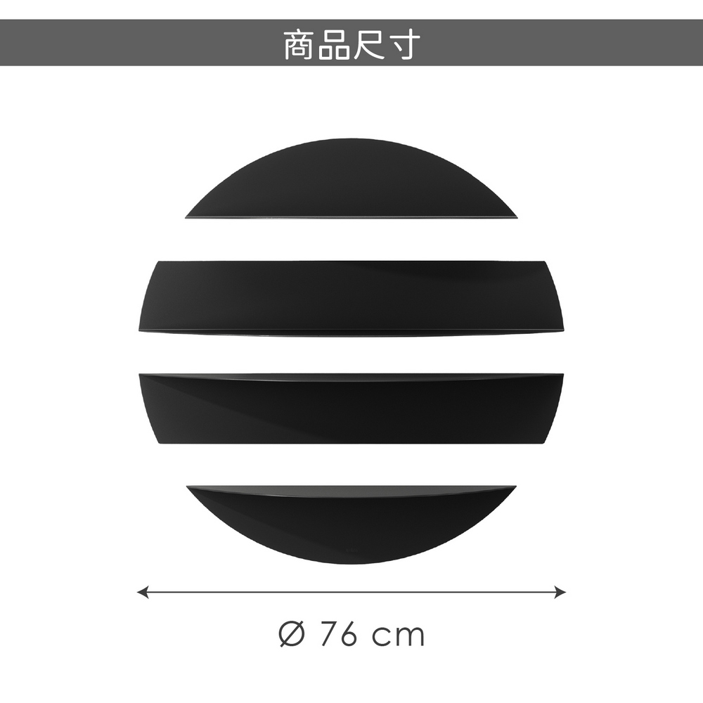 尺寸:擺設時直徑長 76 x 高 76 cm;小層架高 16.5 cm;大層架高 18 cm