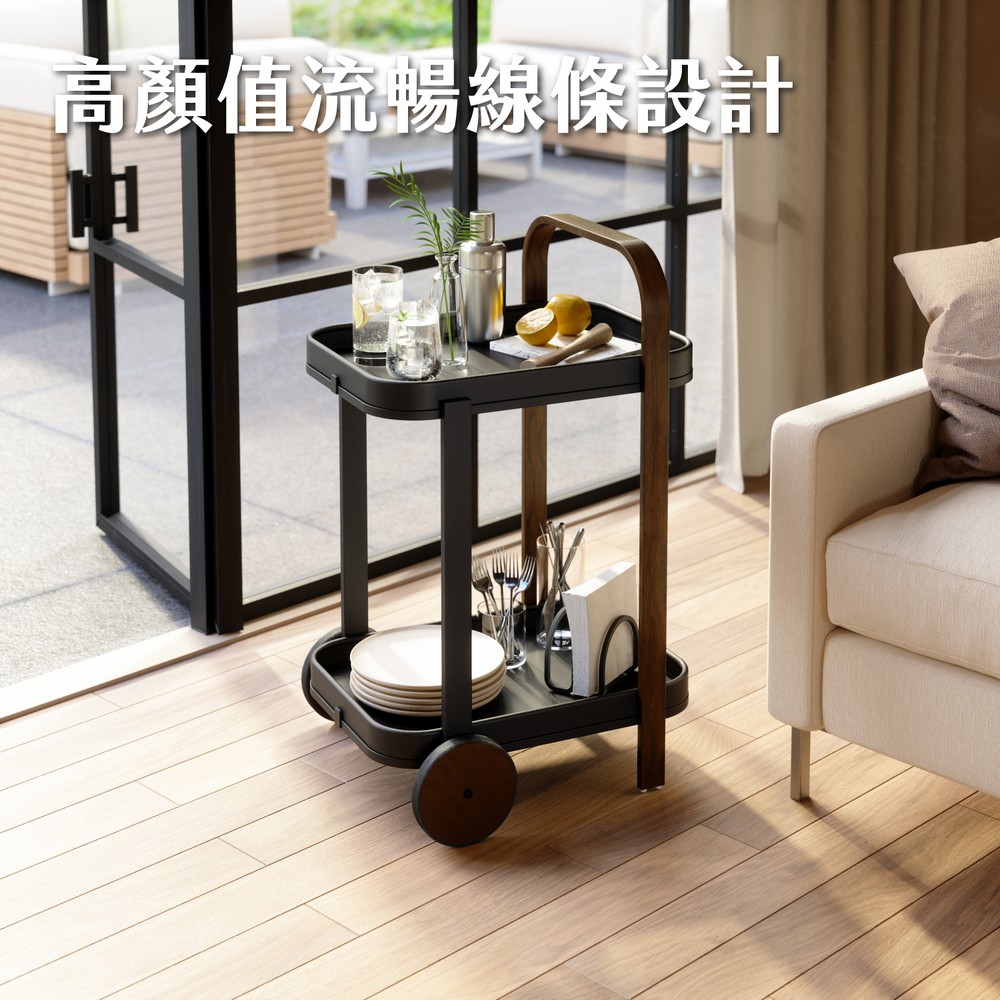 加拿大 Umbra - Bellwood雙層置物推車(胡木黑80cm) / 餐車 美容推車 廚房餐車 收納推車