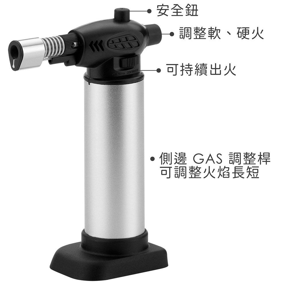 4. 噴槍內裝不含瓦斯,適裝填補充純丁烷瓦斯;使用後待噴槍冷卻才可收納或裝填瓦斯;點火後噴口易熱,請勿觸碰以免燙傷。