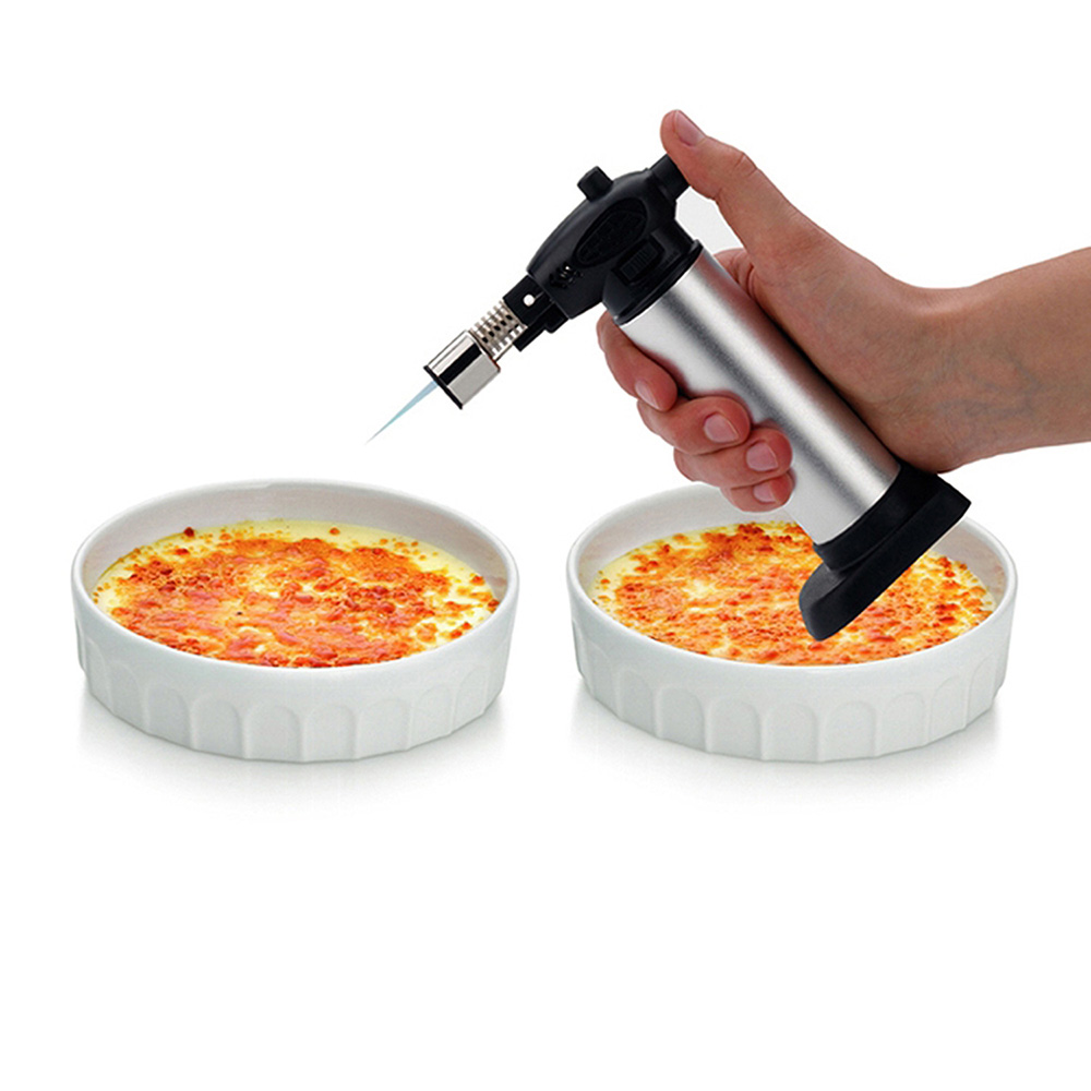 在即將完成的烤布蕾上輕灑一些糖粒,並細心地用火焰均勻炙烤,逐漸成形的薄脆金黃焦糖表面,帶出香氣十足的苦甜滋味;推薦您此款廚用瓦斯噴槍,可持續出火並可調節火焰大小設計,方便於各種料理中使用,是餐廚料理的實用助手。