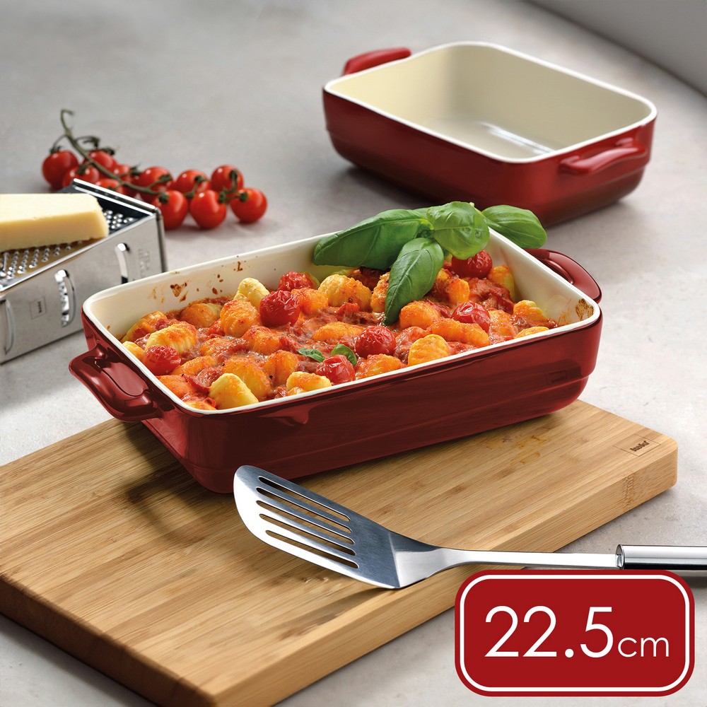 德國 KELA - Malin雙耳長方陶製烤盤(赭紅22.5cm) / 陶瓷烤盤 烤皿 焗烤盤 千層麵烤盤