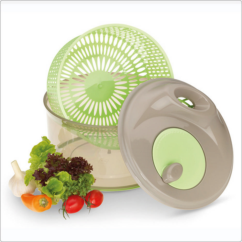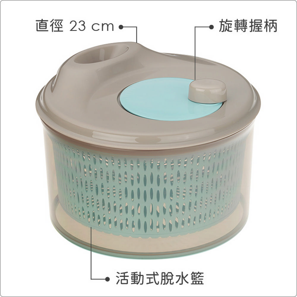 製作清脆爽口的蔬果沙拉,以流動清水將蔬果徹底洗淨後,盡快將蔬果脫水,可避免水分過多而影響沙拉口感。推薦您此款手轉式蔬菜脫水器,圓潤握柄旋轉滑順、好操作,俐落瀝除蔬果水分,是您處理生菜蔬果時的好幫手。