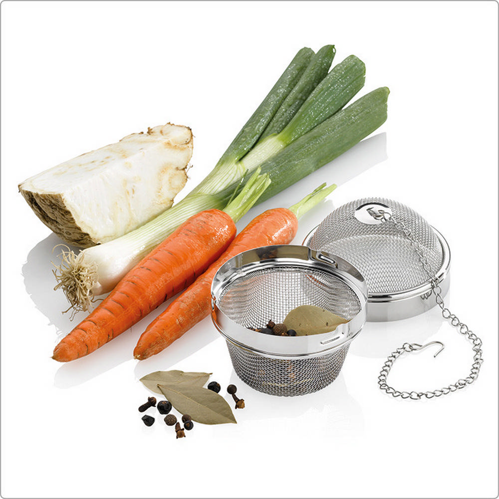 不論是熬煮高湯、中藥補湯、燉煮滷汁,推薦您此款掛式香料濾器;均布的不鏽鋼網狀濾孔,輔助完整釋放食材風味;建議裝填香料五分滿,讓香料有更多舒展空間,是您居家烹飪的好幫手。