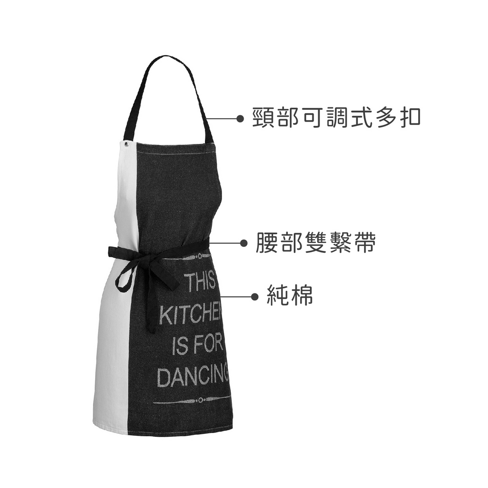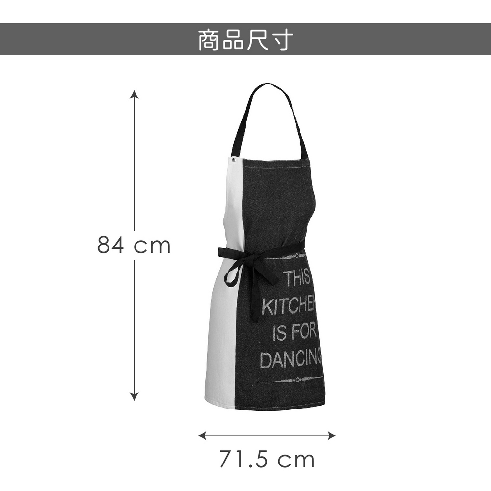 尺寸:圍裙長 84 x 寬 71.5 x 高 0.1 cm;頸部繫帶長 68.5 cm;腰際繫帶單側長 90 cm