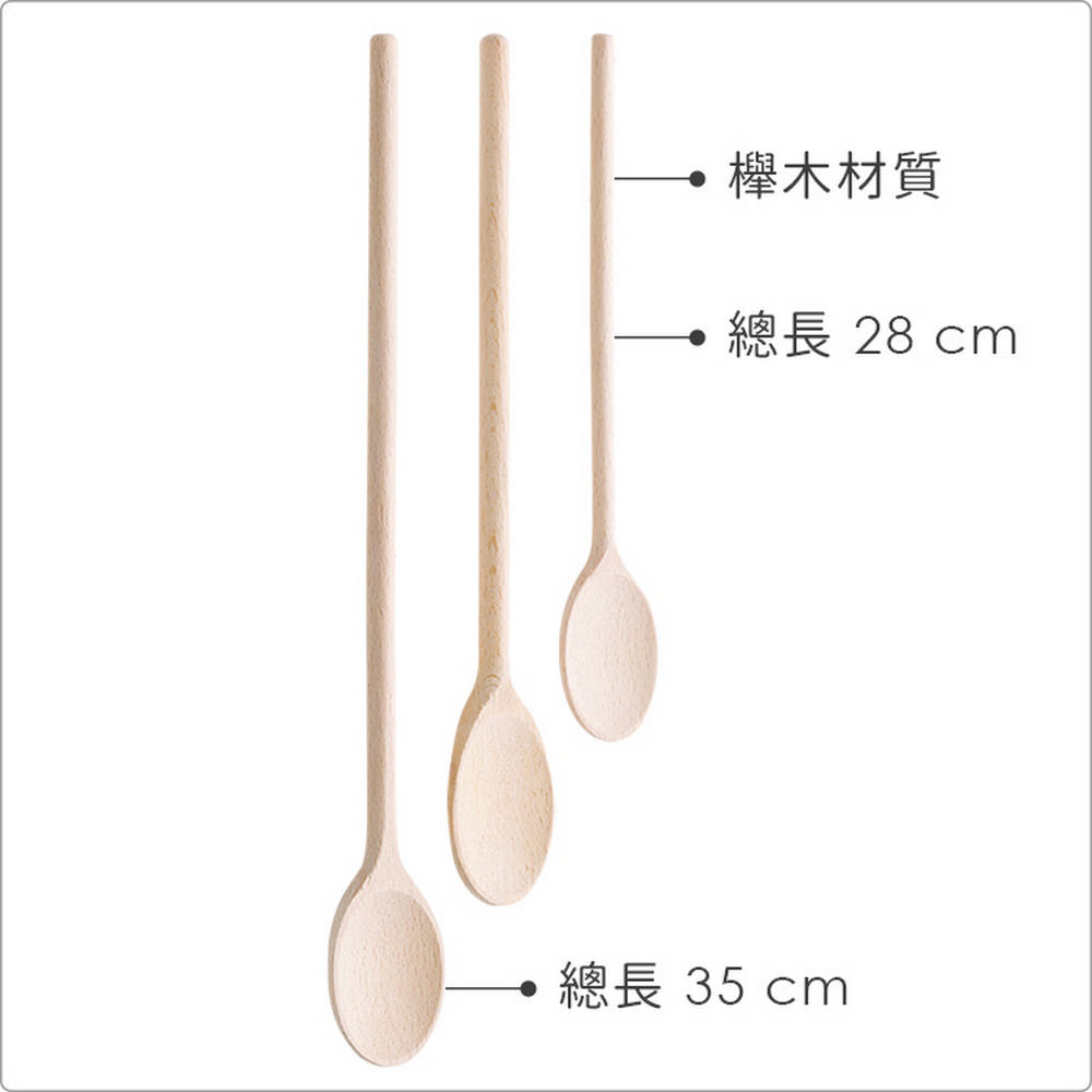 尺寸:鍋鏟長 30 x 寬 6 cm、大料理匙長 35 x 寬 4.7 cm、中料理匙長 30 x 寬 4.5 cm、小料理匙長 25 x 寬 4 cm