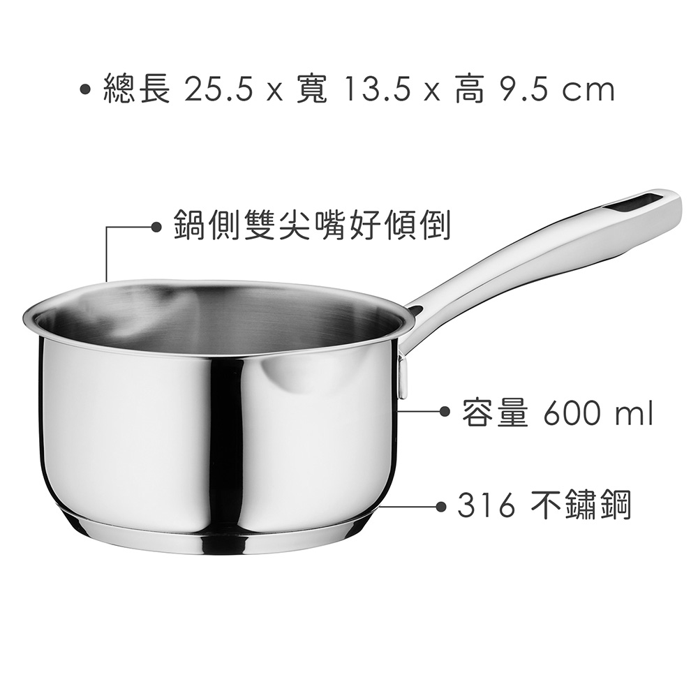 溫熱牛奶、熬煮醬料或製作開胃小點時,尺寸精巧的小煮鍋能幫助控制火侯與份量。推薦您此款牛奶鍋,不鏽鋼材質堅固耐用,厚實底部設計延長保溫;鍋側尖嘴設計方便傾倒醬料,適用於果醬製作、或是擺盤裝飾醬料熬煮,是您不可或缺的好幫手。