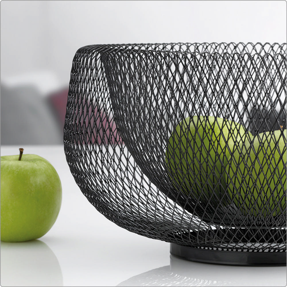 剛去市集買回來的水果,需要一個美觀又兼具收納的地方。推薦您此款鏤空水果籃,不僅可放置水果,還可收納袋裝零食、文具、織品等;以純黑漆色鋼線編織成雙層網狀,呈現獨特質感,更為居家環境帶來雅緻氛圍。