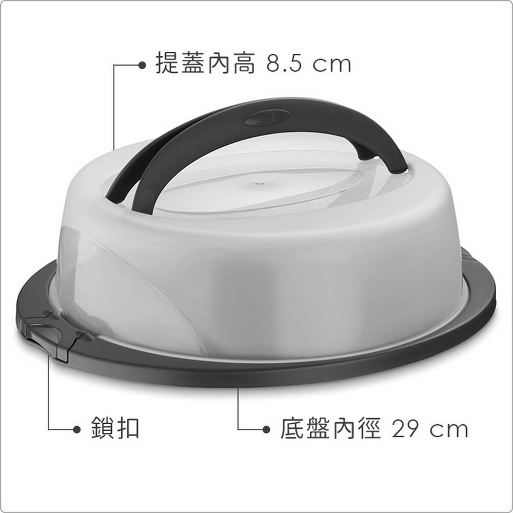 ※ 將蛋糕、點心放入底盤後闔上提蓋,再將兩側扣把固定,即可隔絕外界髒污及蚊蟲。