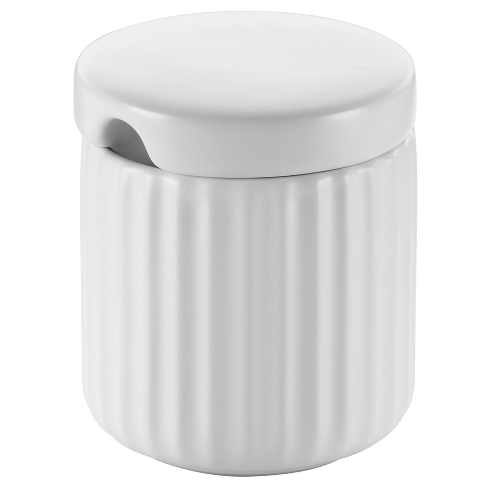 ※ 陶製材質觸感滑順細緻,純白罐身搭配直條壓紋,富設計質感。