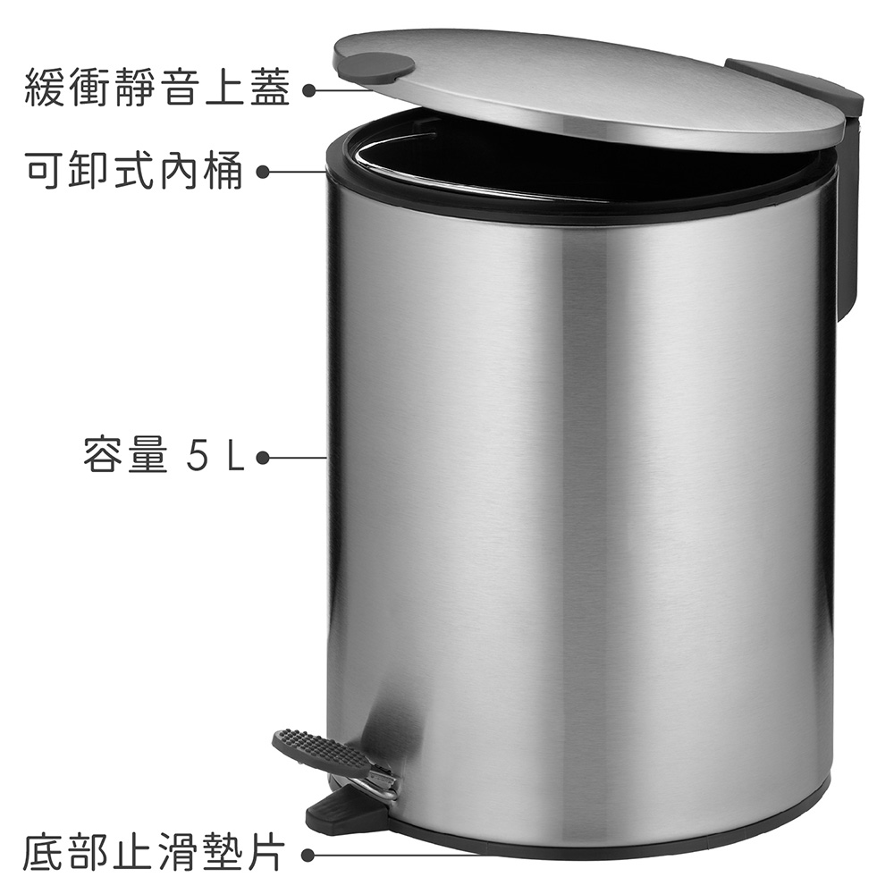 日常使用完畢的衛生紙、包裝袋等消耗品,皆會使用垃圾桶集中收納後再另作處理。推薦您此款垃圾桶,附蓋設計不易飄散出異味。腳踩踏板即可開蓋投入垃圾,不鏽鋼髮絲紋搭配圓型桶身更添質感,是居家環境保持乾淨衛生的推薦選擇。