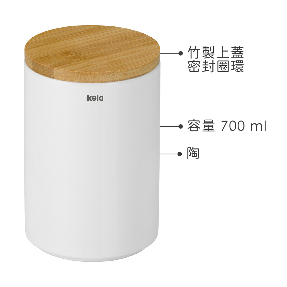 德國 KELA - Cady陶製密封罐(雲朵白700ml) / 保鮮罐 咖啡罐 收納罐 零食罐 儲物罐