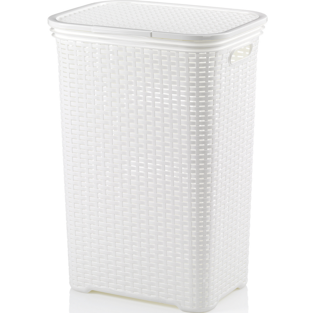 每天整理褪換的髒衣物,抑或將清洗好的乾淨衣物晾乾,此款洗衣籃是您的好選擇。純色編織造型,搭配兩側提把和掀蓋設計,可穩妥擺放衣物且易於提拿;大容量亦可作日常整理,如玩具、日用備品等收納,是您居家生活的好選擇。