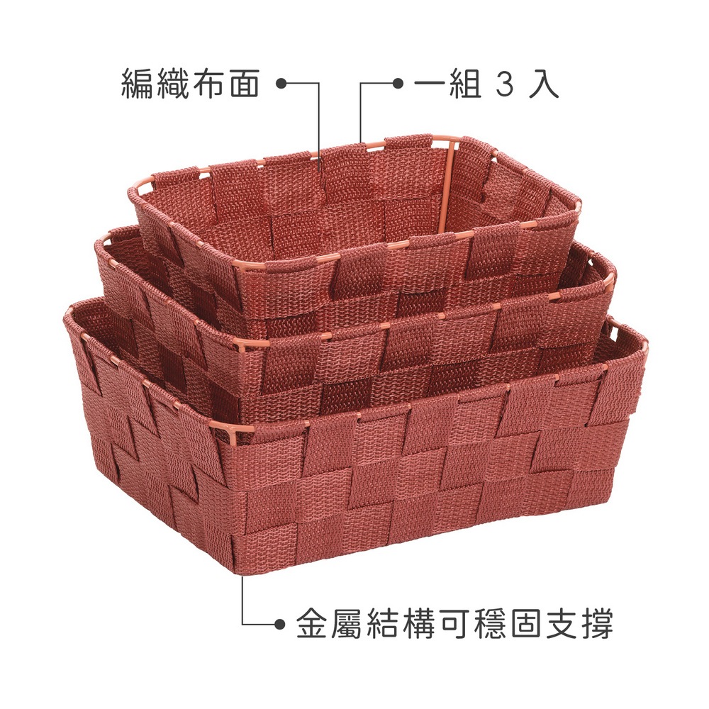 德國 KELA - Alvaro長方編織收納籃3件(磚紅) / 整理籃 置物籃 儲物箱