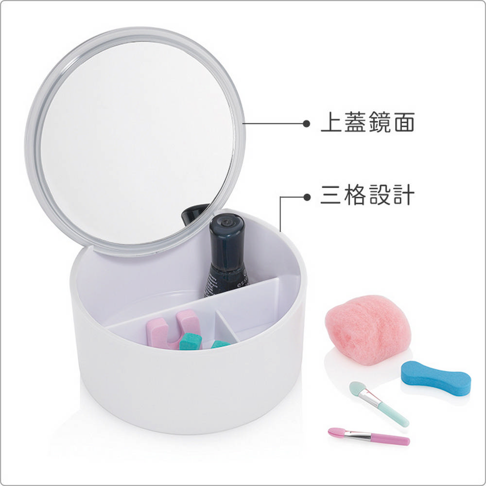 1. 本商品一件入;上蓋為鏡子設計;內共有大中小三格設計 (示意圖僅供參考,不附化妝品等內容物)。
