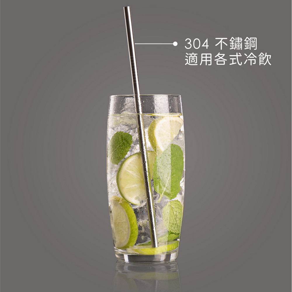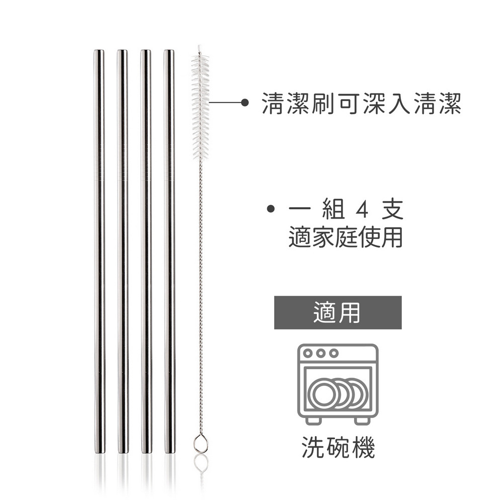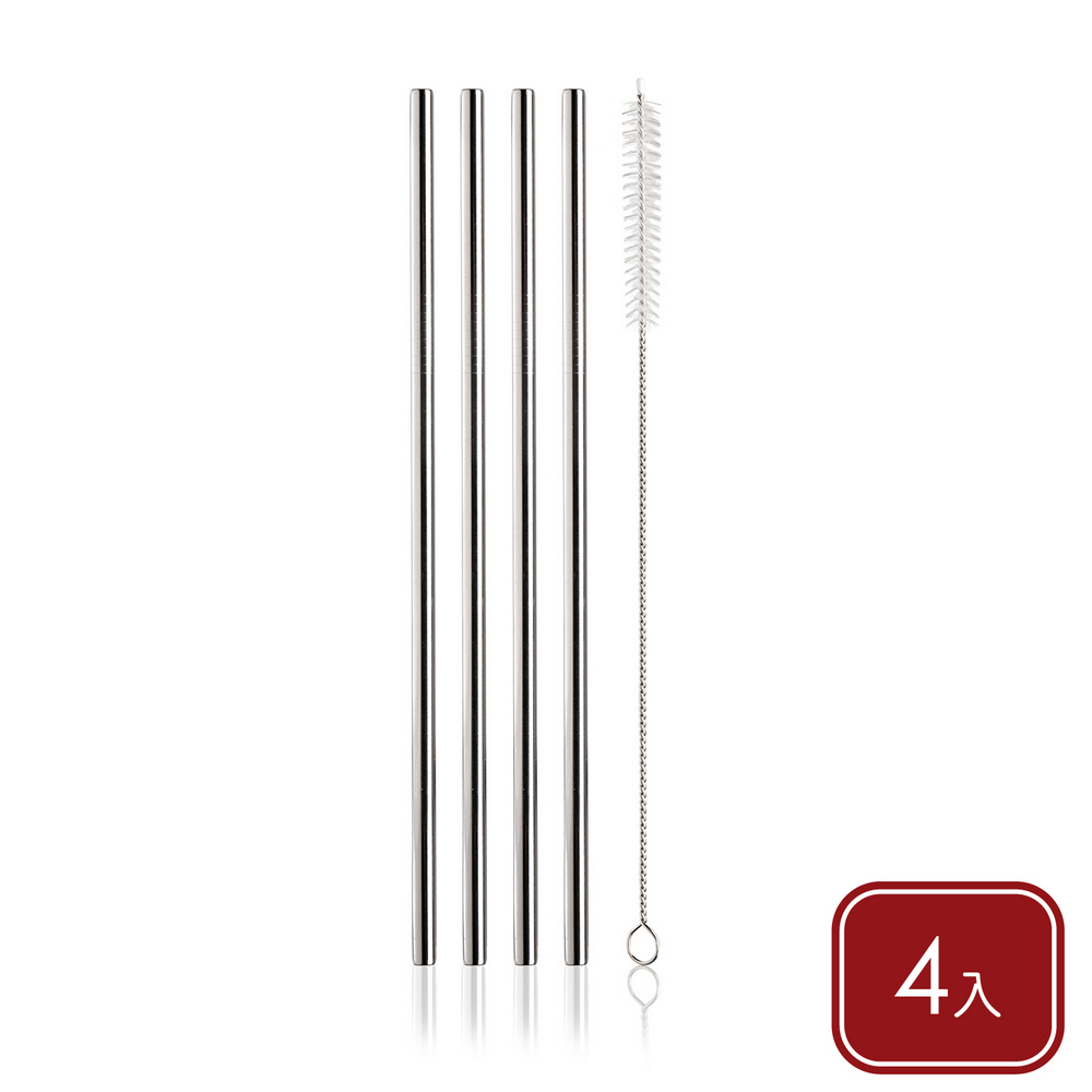 荷蘭 Vacu Vin - 清潔刷+不鏽鋼吸管4入(銀21.5cm) / 環保吸管 飲料杯 手搖杯