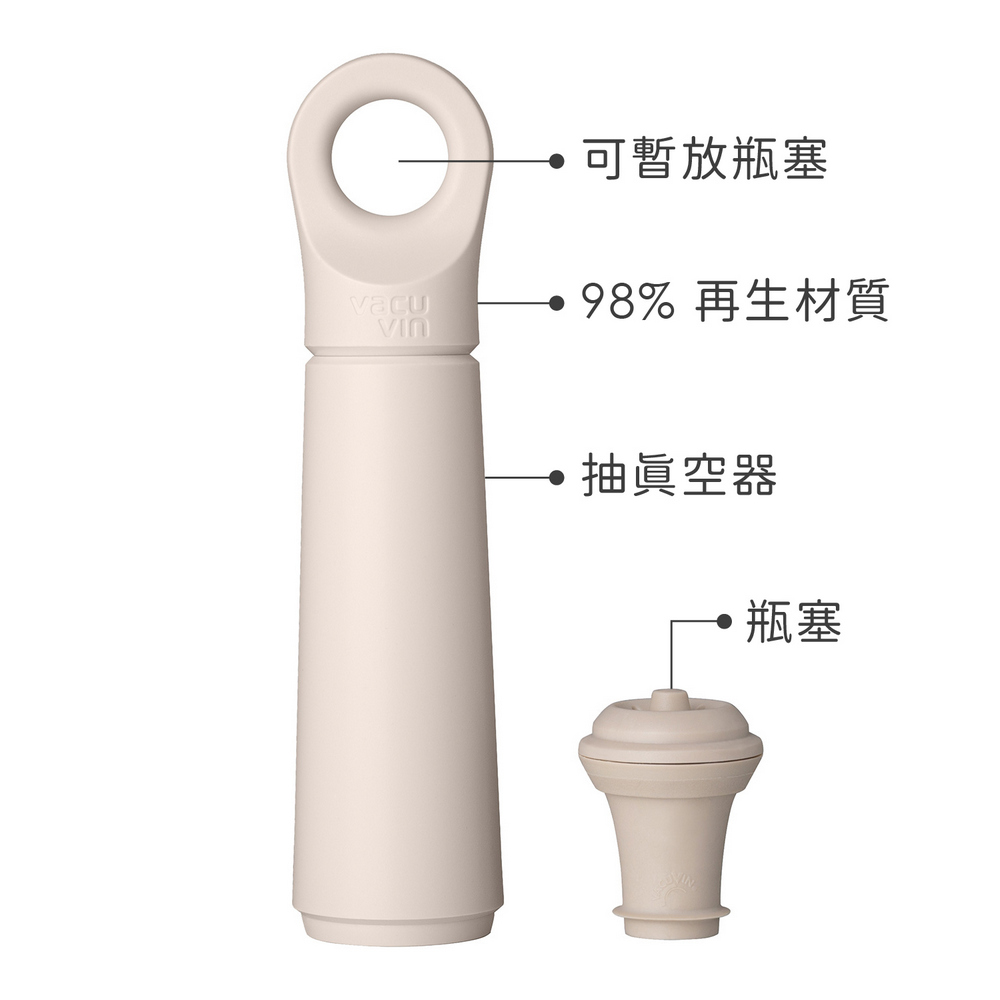 荷蘭 Vacu Vin - Loop抽真空器+酒瓶塞(象牙白) / 紅酒塞 真空瓶塞 保鮮瓶塞 葡萄酒塞