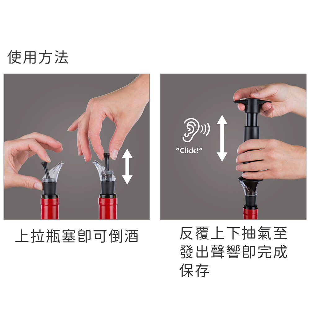 荷蘭 Vacu Vin - 抽真空器+瓶塞注酒器(黑) / 紅酒塞 真空瓶塞 保鮮瓶塞 葡萄酒塞