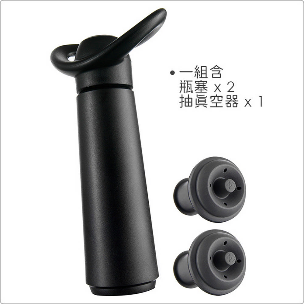 荷蘭 Vacu Vin - 抽真空器+瓶塞2入(黑) / 紅酒塞 真空瓶塞 保鮮瓶塞 葡萄酒塞