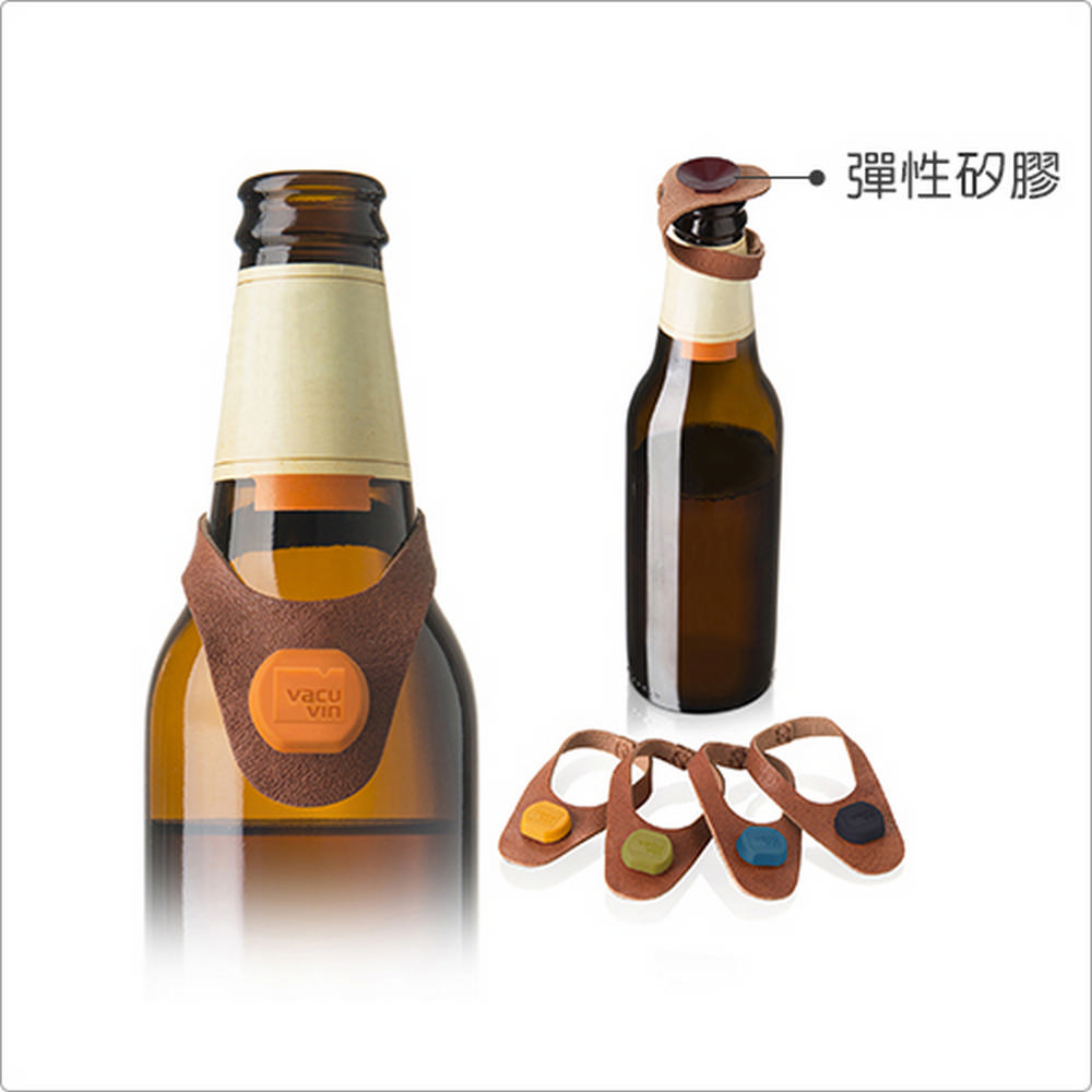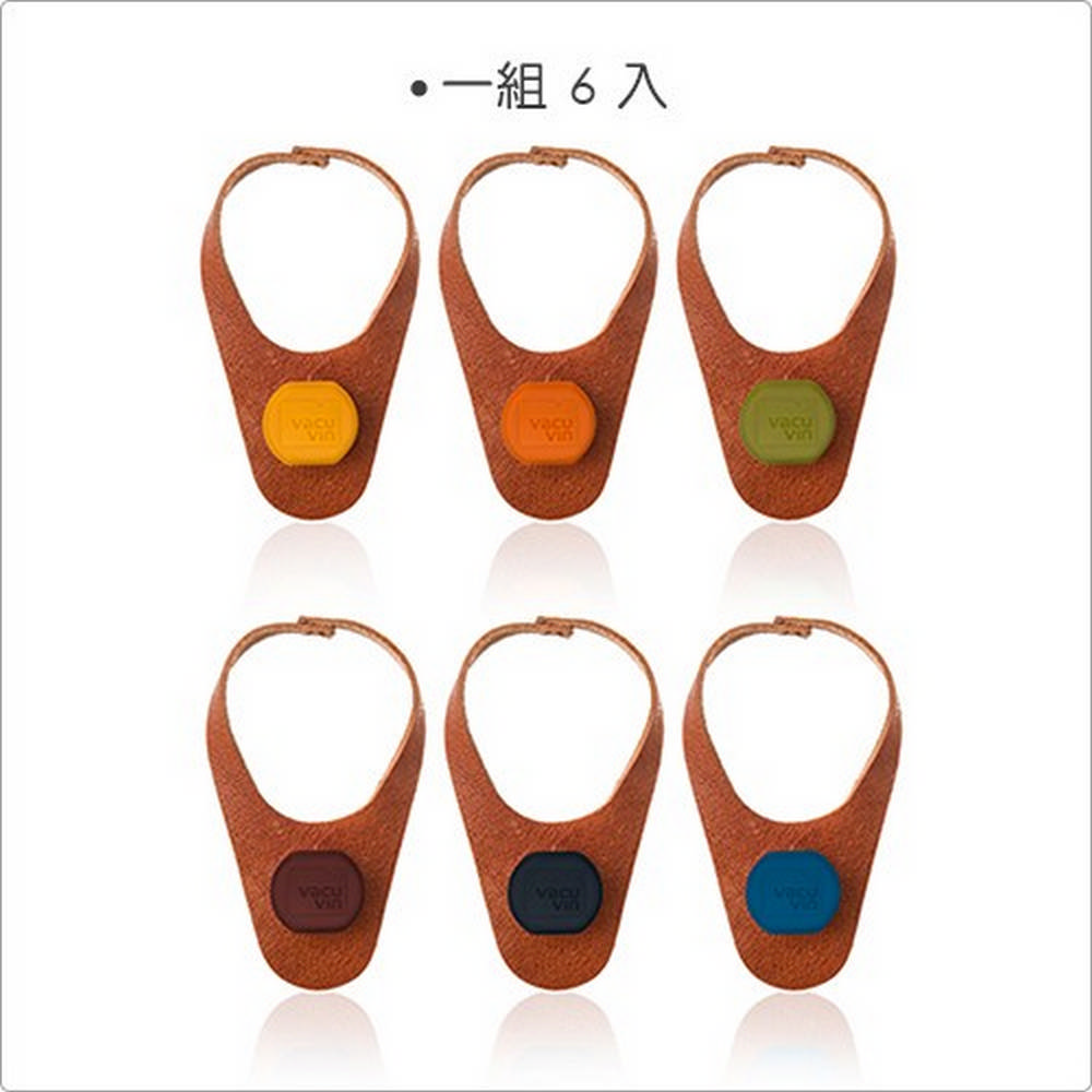 荷蘭 Vacu Vin - 掛式矽膠酒瓶塞6入(皮革) / 紅酒塞 葡萄酒塞