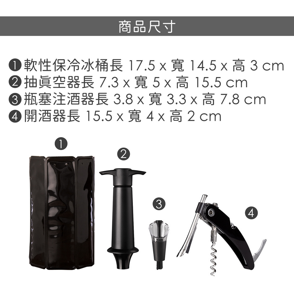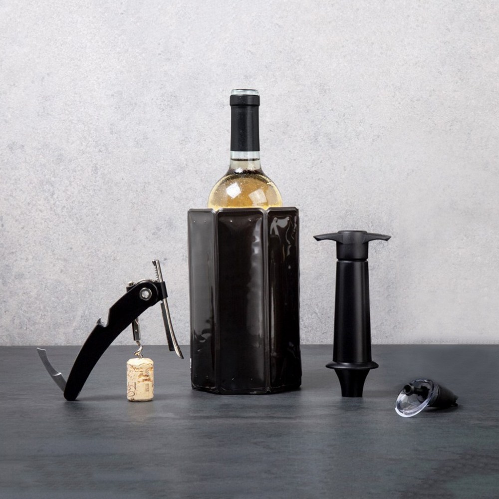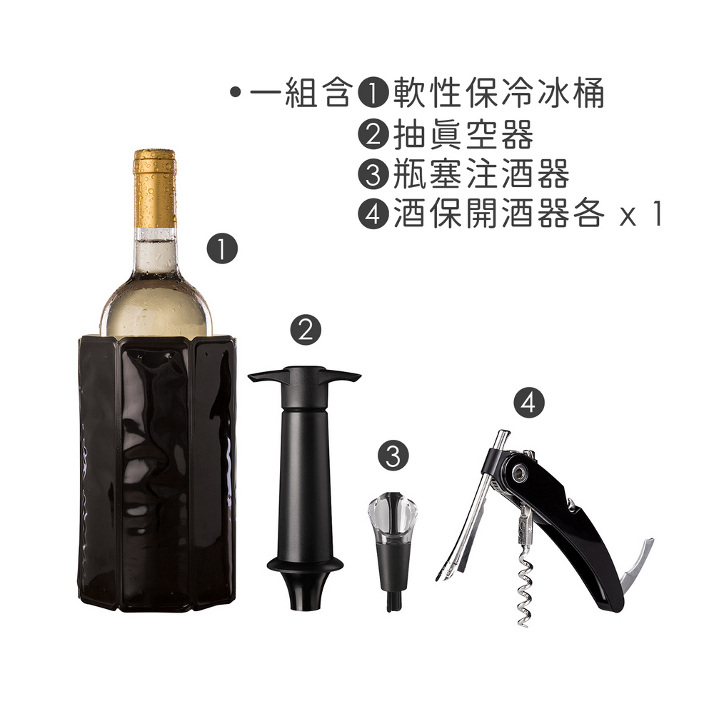 荷蘭 Vacu Vin - 軟冰桶+開酒瓶塞注酒抽真空組(黑) / 開酒器 開瓶器 瓶塞 酒塞 保鮮瓶塞 鋁箔刀 冰酒桶