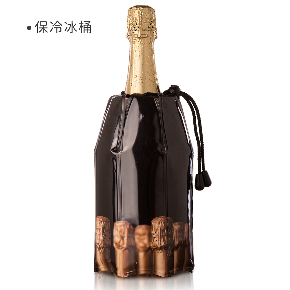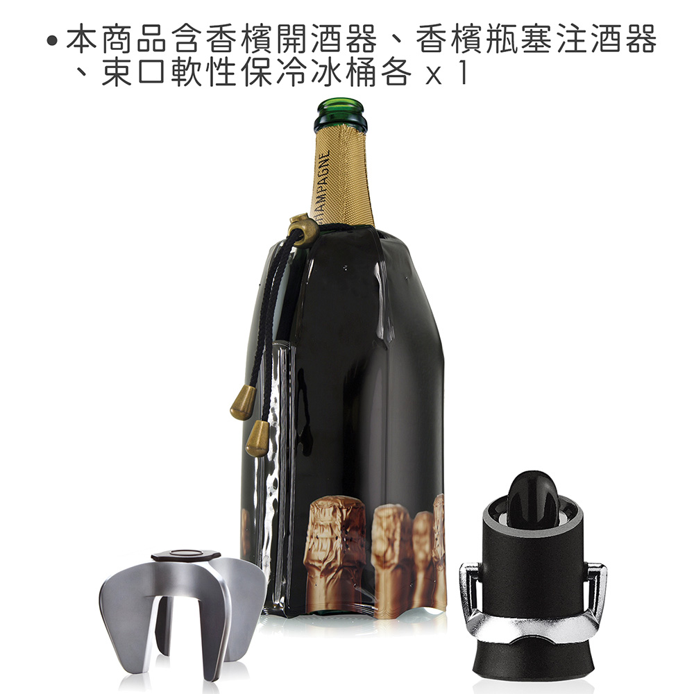 荷蘭 Vacu Vin - 束口軟冰桶+香檳開酒注酒組 / 氣泡酒 開酒器 開瓶器 瓶塞 酒塞 冰酒桶