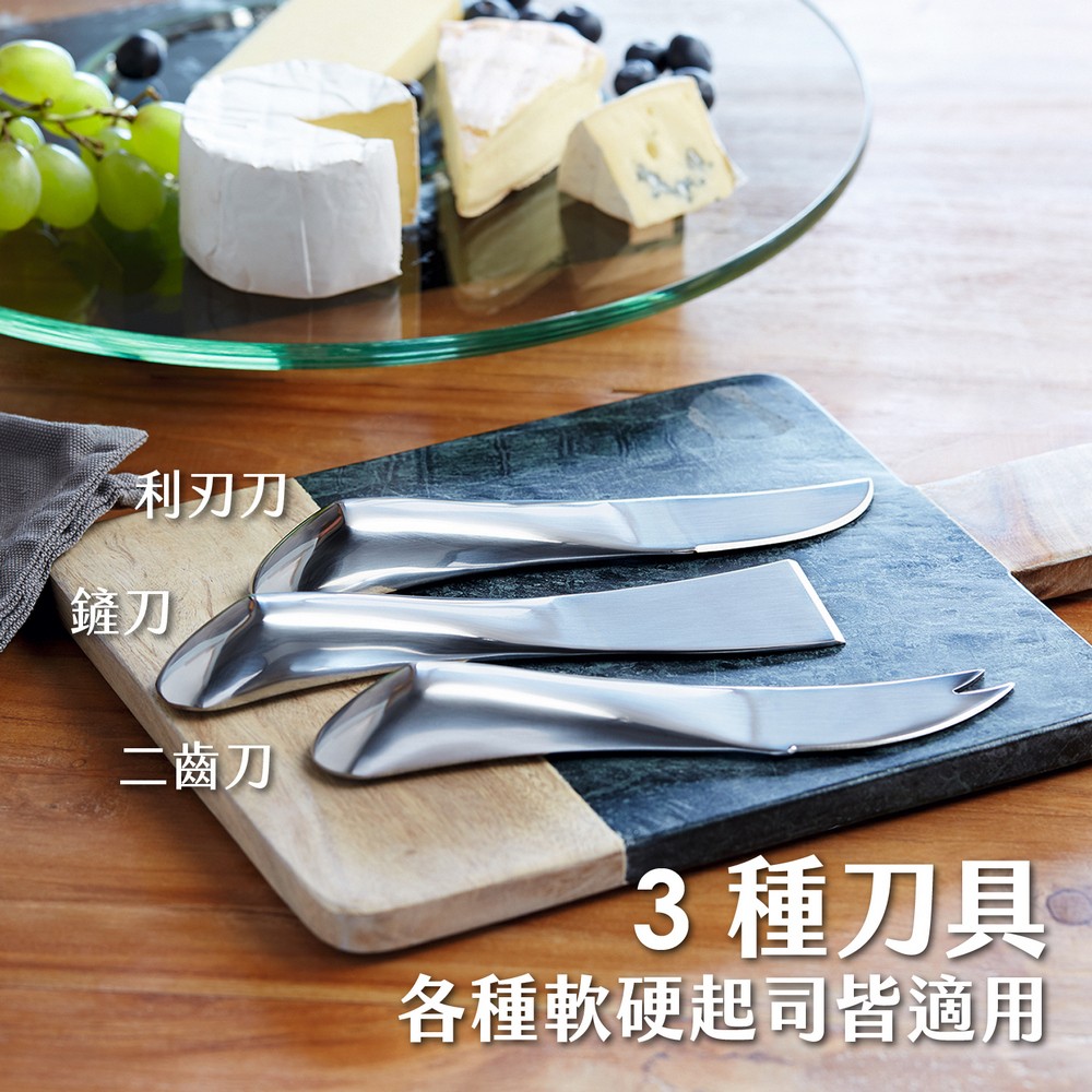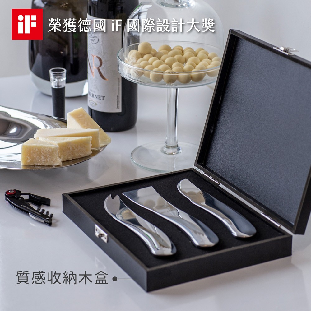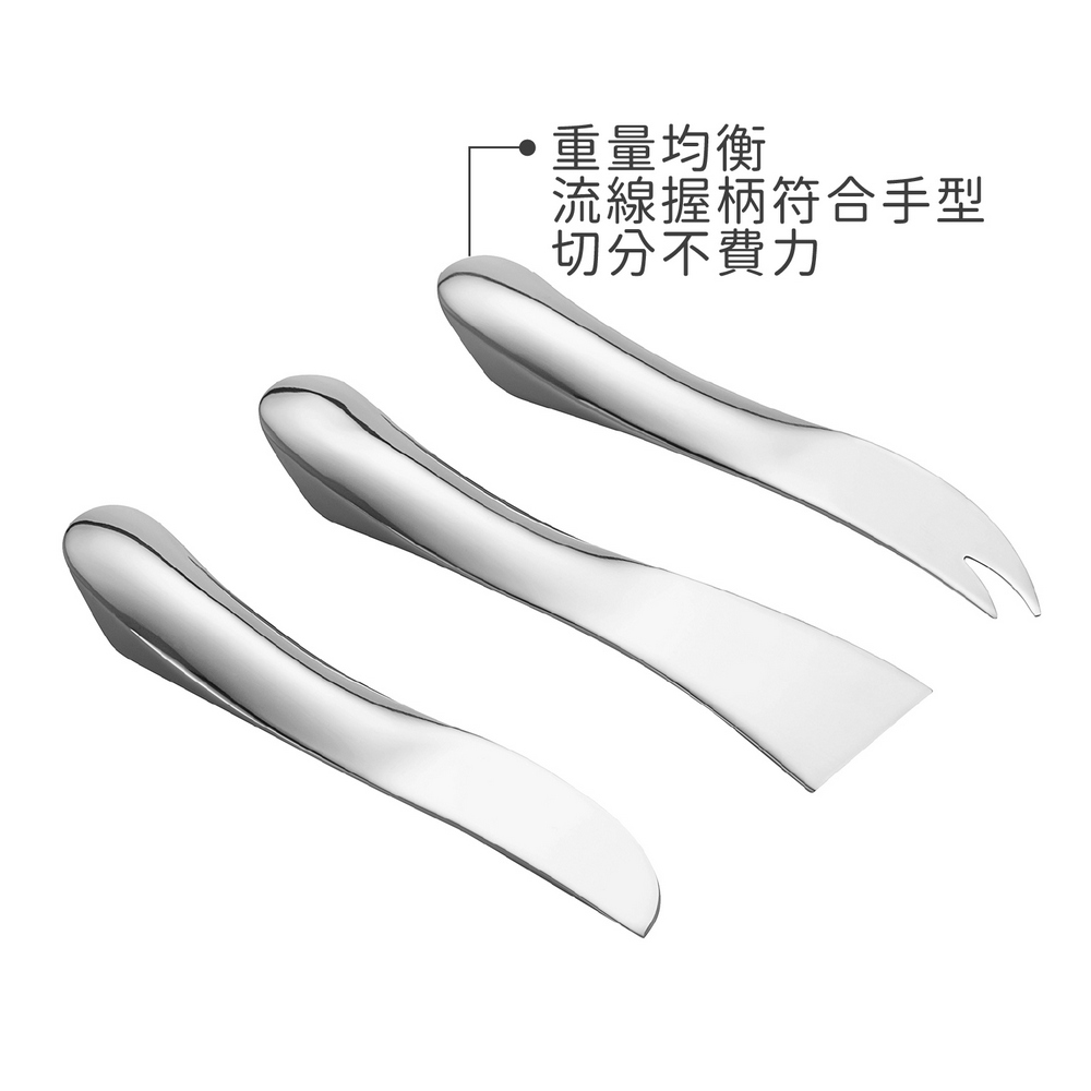 德國 Philippi - Wave附收納盒起司刀3件(璀璨銀) / 起士叉 乳酪刀 起司抹刀組